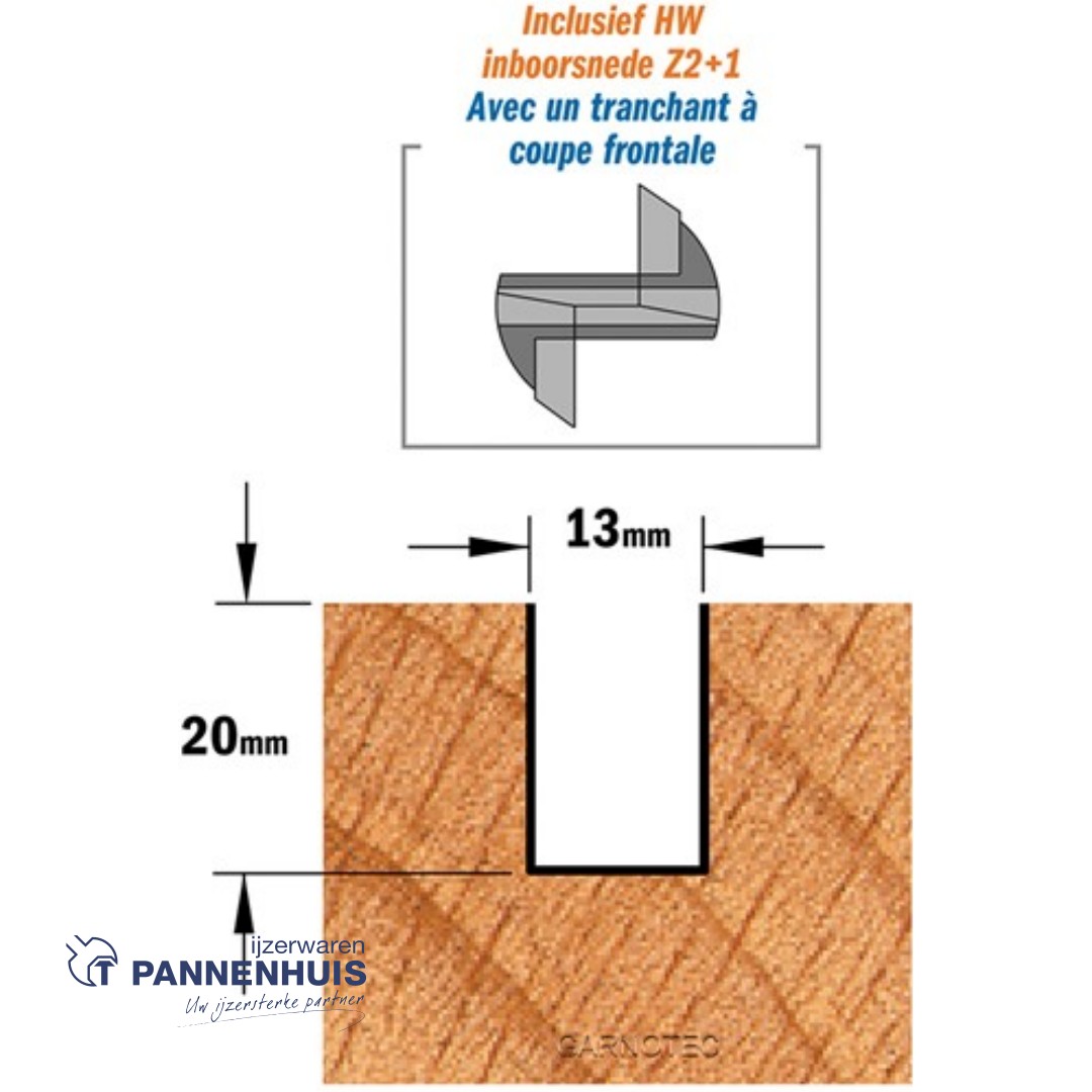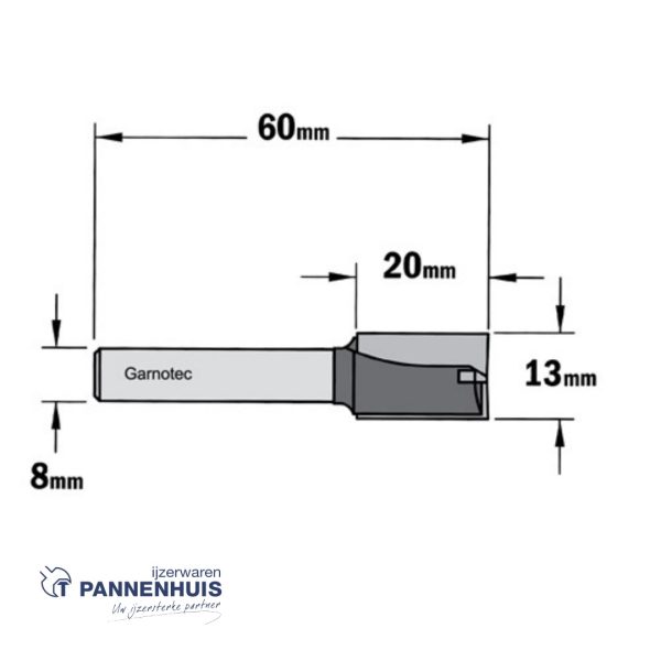 Rechte groeffrees, D=13, I=20, L=60, Z=Z2+1, S=Ø8, Kwaliteit=HW