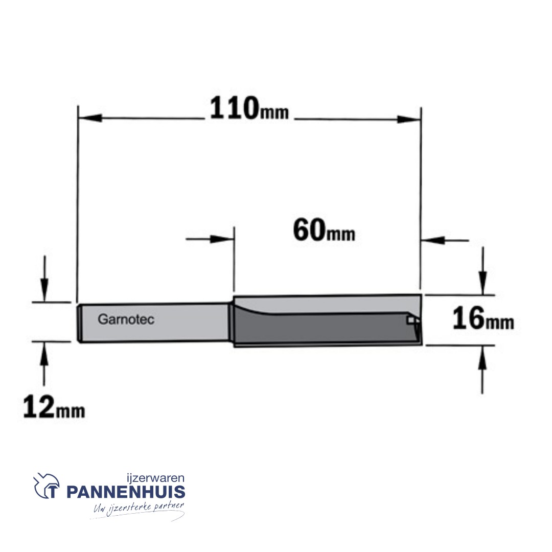 Rechte groeffrees, D=16, I=60, L=110, Z=Z2+1, S=Ø12, Kwaliteit=HW