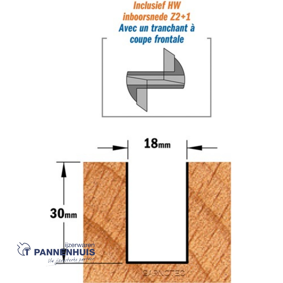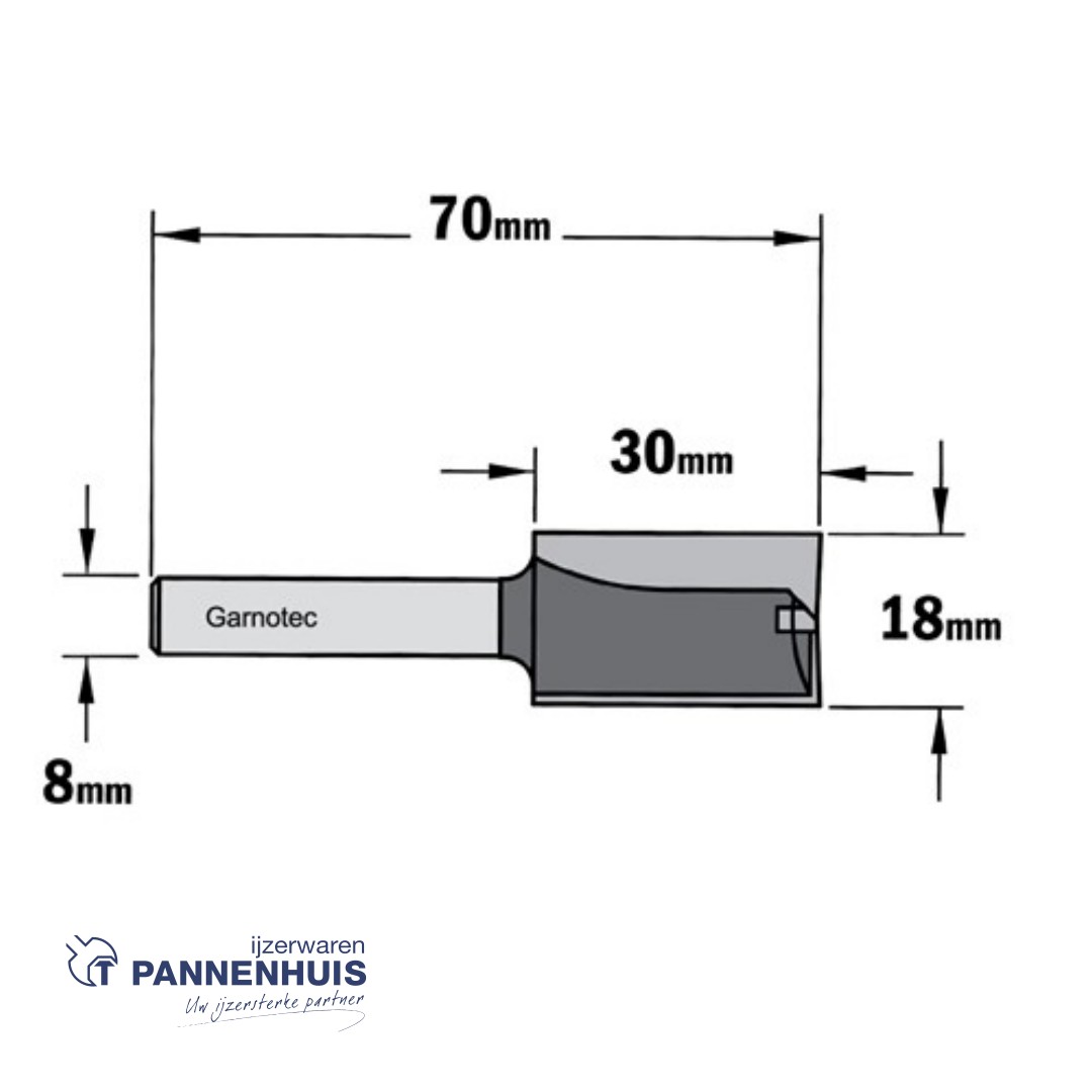 Rechte groeffrees, D=18, I=30, L=70, Z=Z2+1, S=Ø8, Kwaliteit=HW