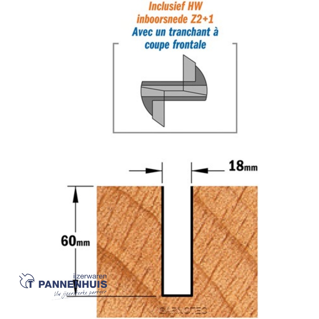 Rechte groeffrees, D=18, I=60, L=110, Z=Z2+1, S=Γ12, Kwaliteit=HW
