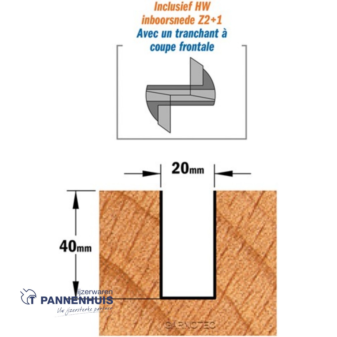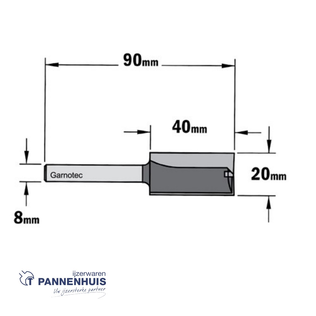 Rechte groeffrees, D=20, I=40, L=90, Z=Z2+1, S=Ø8, Kwaliteit=HW