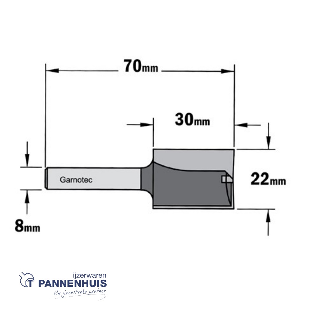 Rechte groeffrees, D=22, I=30, L=70, Z=Z2+1, S=Ø8, Kwaliteit=HW