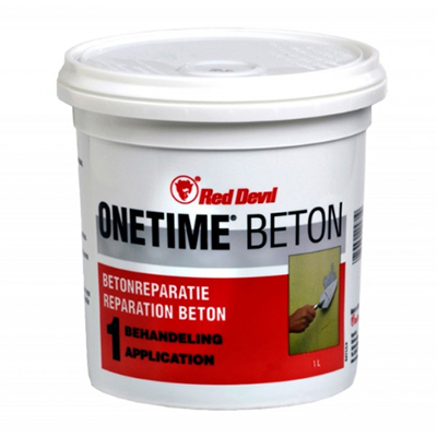 Red Devil Onetime Beton, is een betonrepair en een lichte, kant & klare pasta voor het afwerken, bijwerken en herstellen van gaten, barsten en naden in steen en beton. Het product is na zeven dagen volledig uitgehard.
