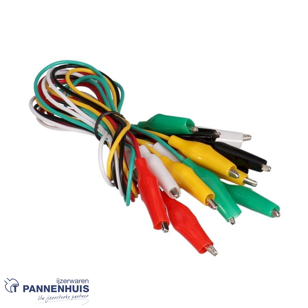 Deze set van 10 kleurgecodeerde kabels, elk met geïsoleerde krokodillenklemmen aan beide uiteinden, is ideaal voor het snel en eenvoudig maken van tijdelijke elektrische verbindingen. Met een lengte van 50 cm en gemaakt van duurzaam CCS materiaal, zijn deze kabels perfect voor testopstellingen, elektronica-projecten en andere toepassingen waarbij een snelle en betrouwbare verbinding vereist is.