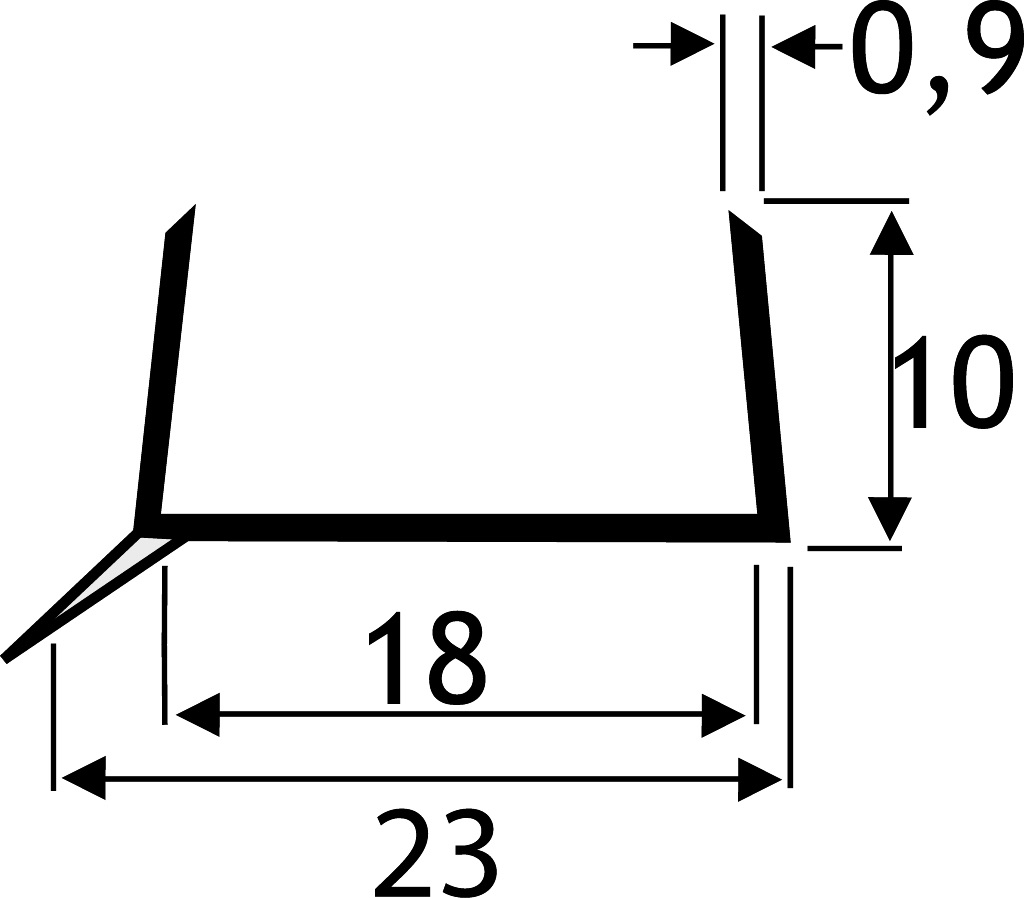 Profiel voor sokkels van 18 mm Uitvoering: kunststof