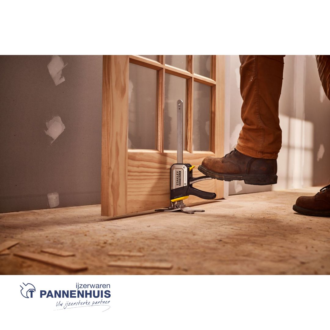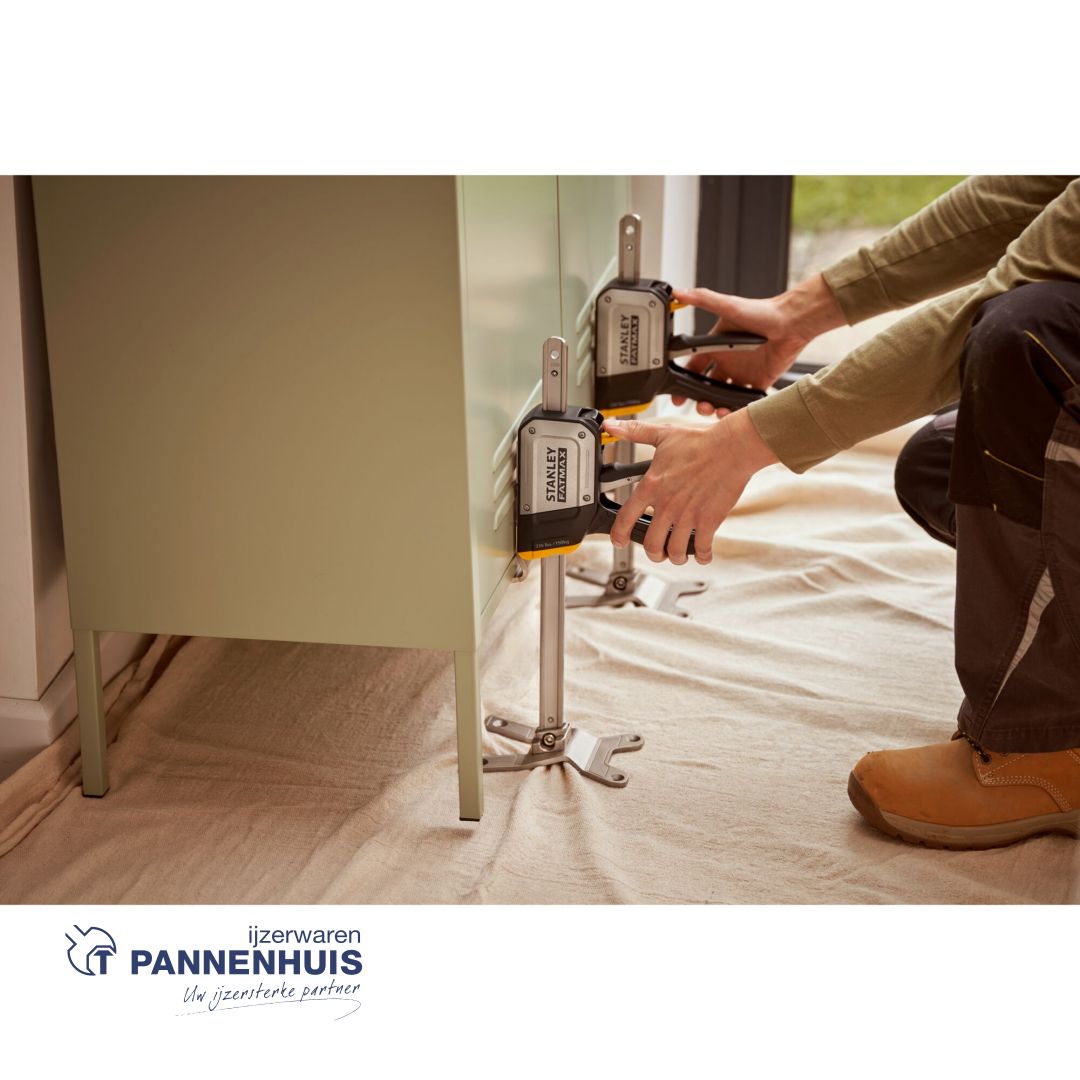 De STANLEY® FATMAX® TradeLift™ is ontworpen voor veilig en eenvoudig heffen, nivelleren, vasthouden en monteren van zware lasten tot 150 kg. Dit professionele gereedschap heeft een duwhendel die zowel met de hand als met de voet kan worden bediend, waardoor gebruikers druk kunnen uitoefenen op de hendel voor gemakkelijker heffen van bijvoorbeeld apparaten, plaatmateriaal of meubels.nDe TradeLift is gebouwd voor precisie en beschikt over een fijnafsteller waarmee de hefplaat fijn kan worden afgesteld bij het nivelleren van het werkstuk. Daarnaast heeft het een schuine rand aan de onderkant zodat het gereedschap onder lage objecten kan worden geschoven.nVoor maximale stabiliteit heeft de TradeLift™ vier verzinkte schroefgaten om veilige verankering te garanderen. Ook heeft het een grote basisplaat om het risico op kantelen te voorkomen.nHet gereedschap is duurzaam dankzij de afgesloten metalen plaatbehuizing die het beschermt tegen stof en vuil. Bovendien geeft de ergonomische softgrip handgreep extra grip, comfort en controle.