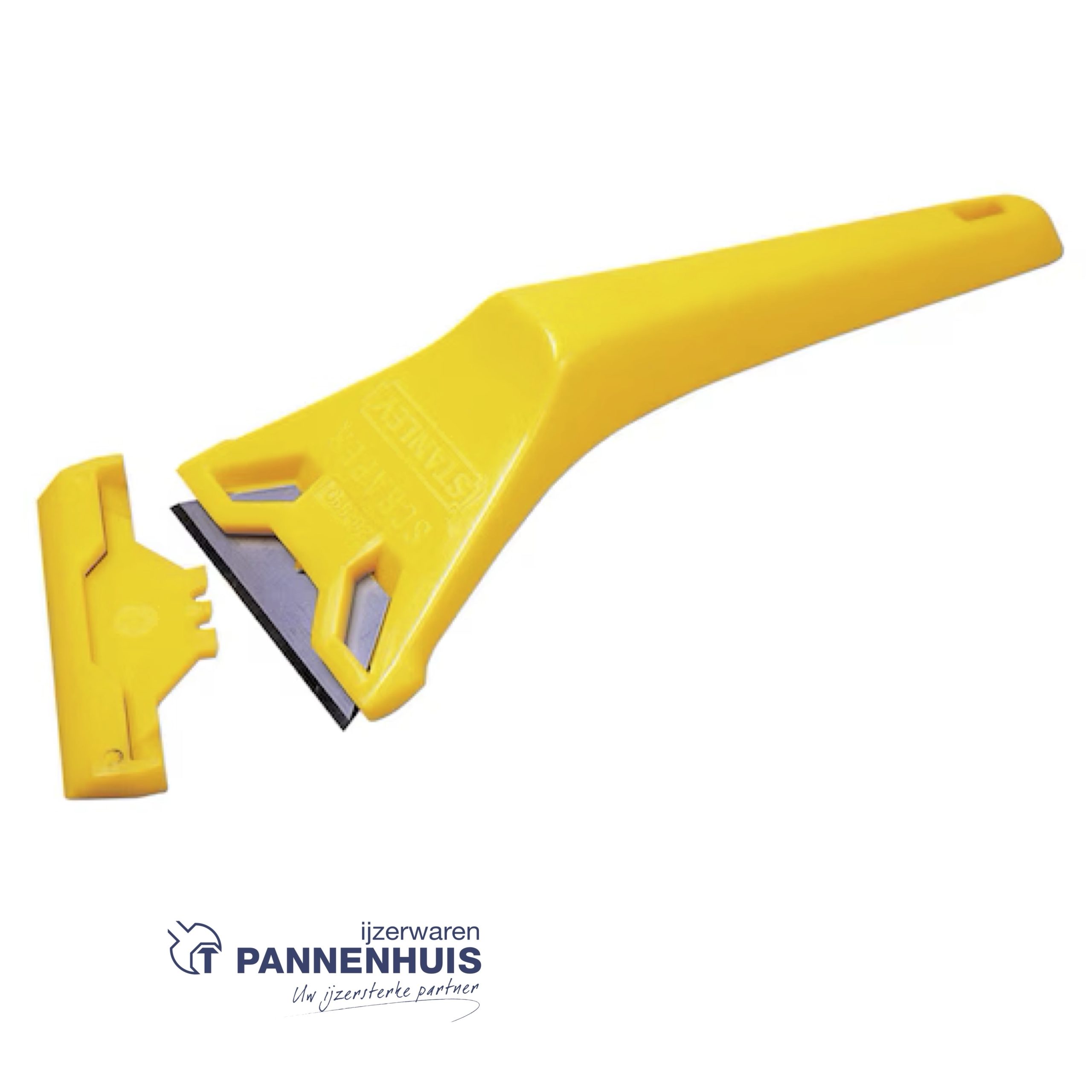 Geel kunststof handvat met vervangbaar blad 1992 voor zwaar gebruikVoor het verwijderen van overmaat aan verf van vensters