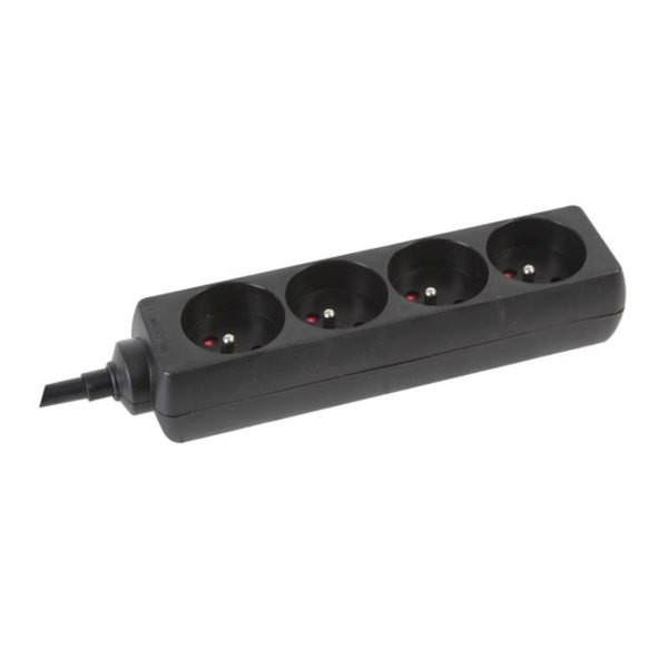Stekkerdoos, 4 stopcontacten met penaarde (type E), kabel 1.5 m, 3G1.5, zwart