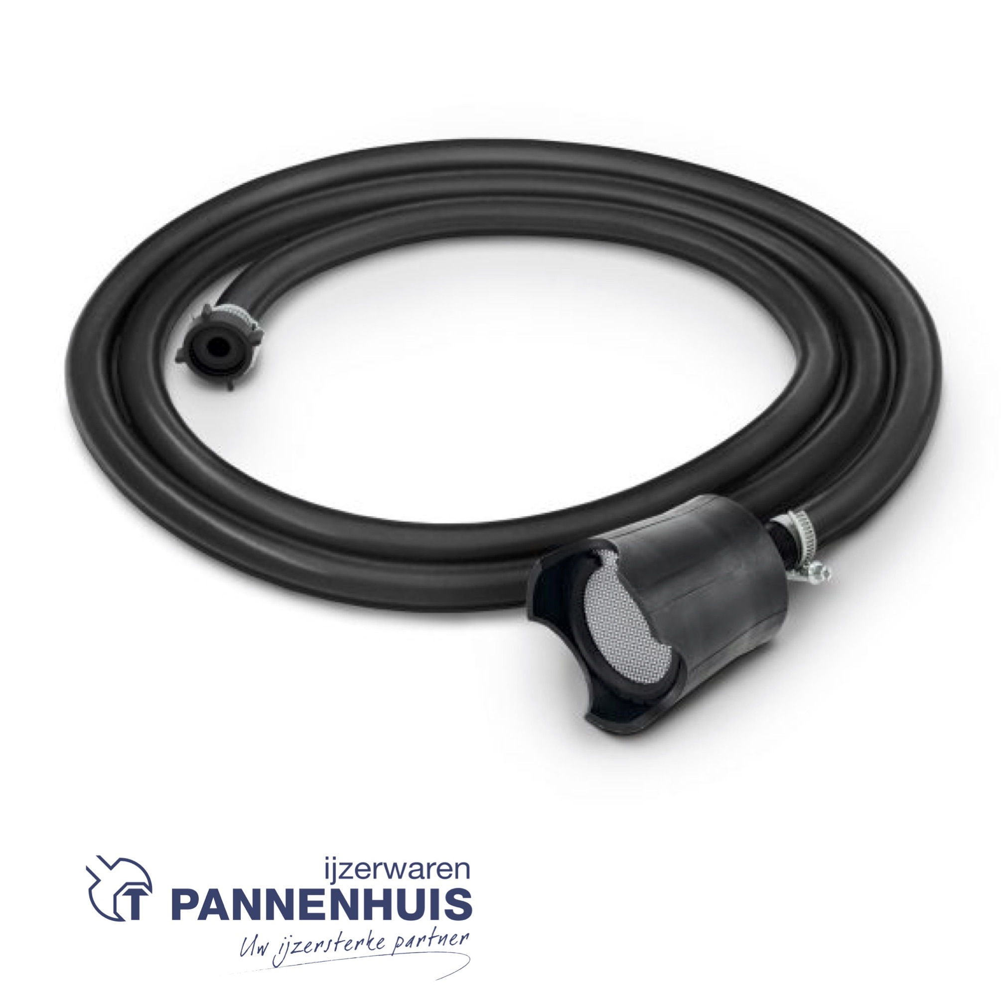 Aanzuigset voor drukloze watervoorziening uit regentonnen en regenputten. Het gebruik van een waterfilter wordt geadviseerd, voor RE 80 – RE 462 PLUS. 3 m lang.