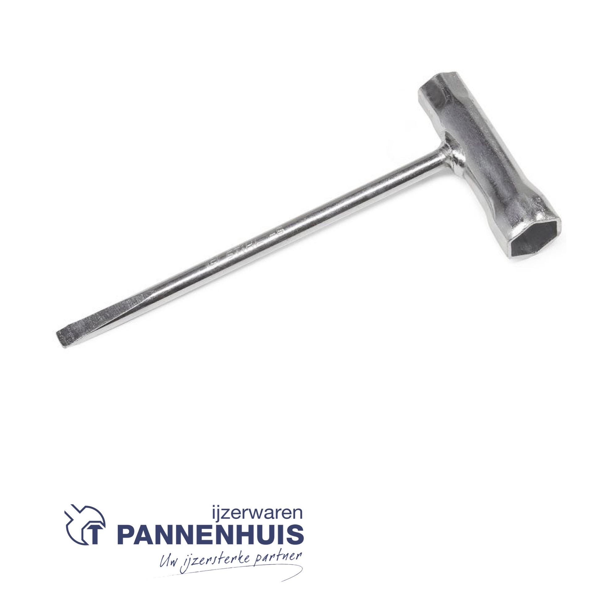 Praktisch gereedschap voor STIHL kettingzagen. Om de ketting op te spannen en om van ketting, zaagblad en bougie te wisselen. In 4 verschillende sleutelwijdtes leverbaar.