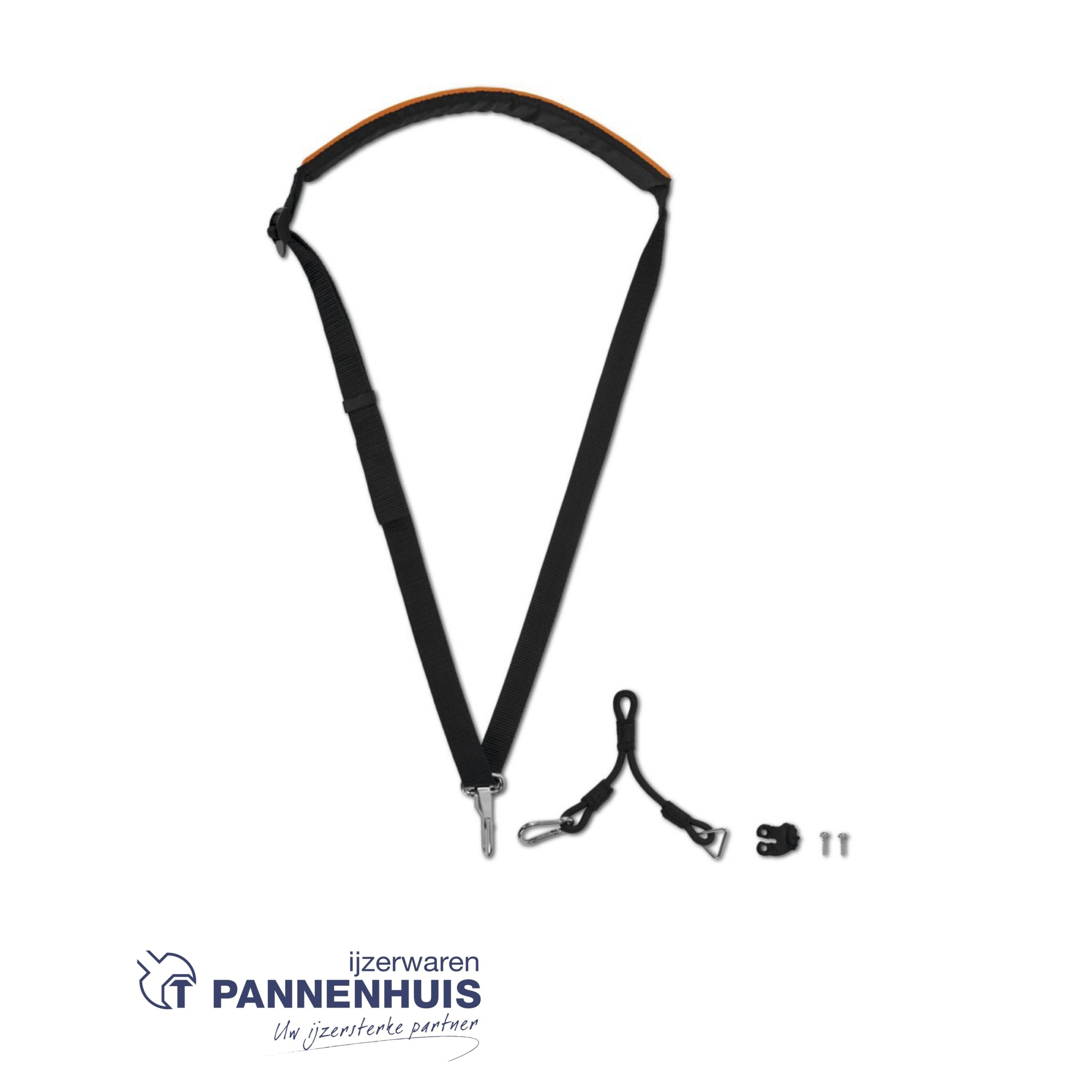 Het gevoerde draagstel wordt compleet met de bevestigingsriem, het ophangoog en de nodige schroeven geleverd.