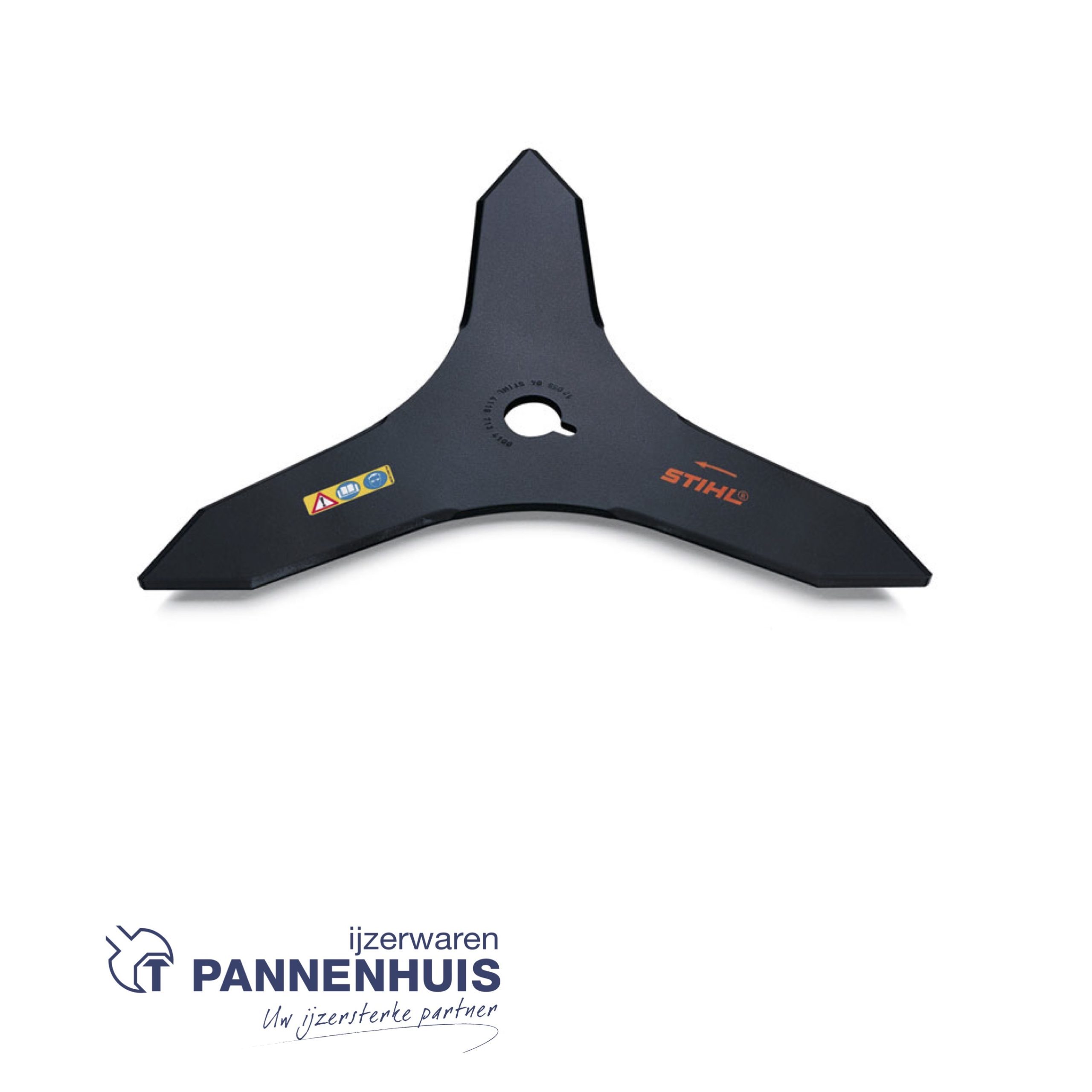 Driehoeksmes uit staal, voor het afmaaien en verwijderen van taai vervilt gras, struikgewas en voor het snoeien van doornhagen. Te gebruiken met de hakselmesbeschermkap.