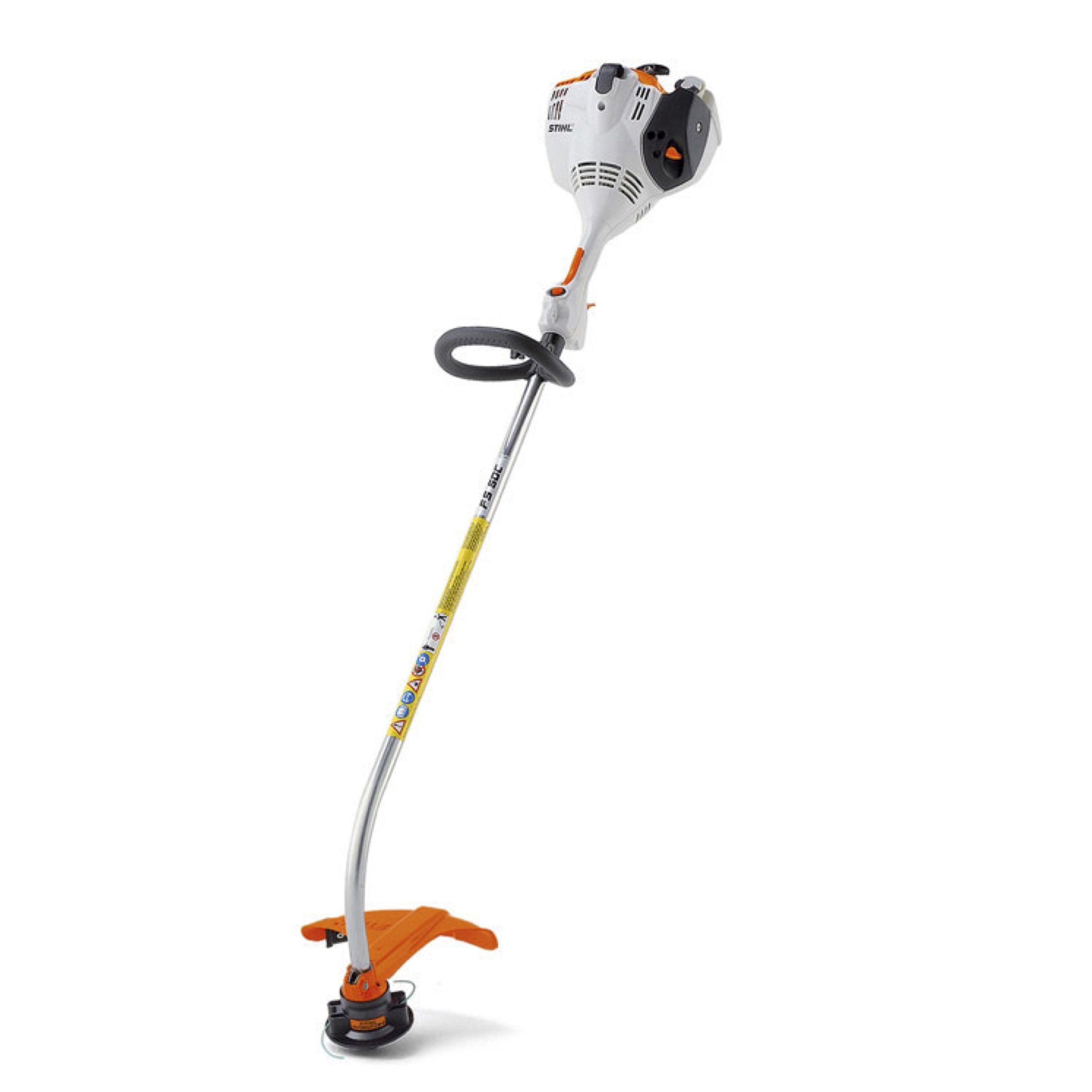 Nieuwe lichte benzine grastrimmer met een vereenvoudigde startprocedure. Beugelgreep met duimschroef. Geschikt voor het maaien van grasperken en snoeien rond bomen, paden en randen in de tuin.