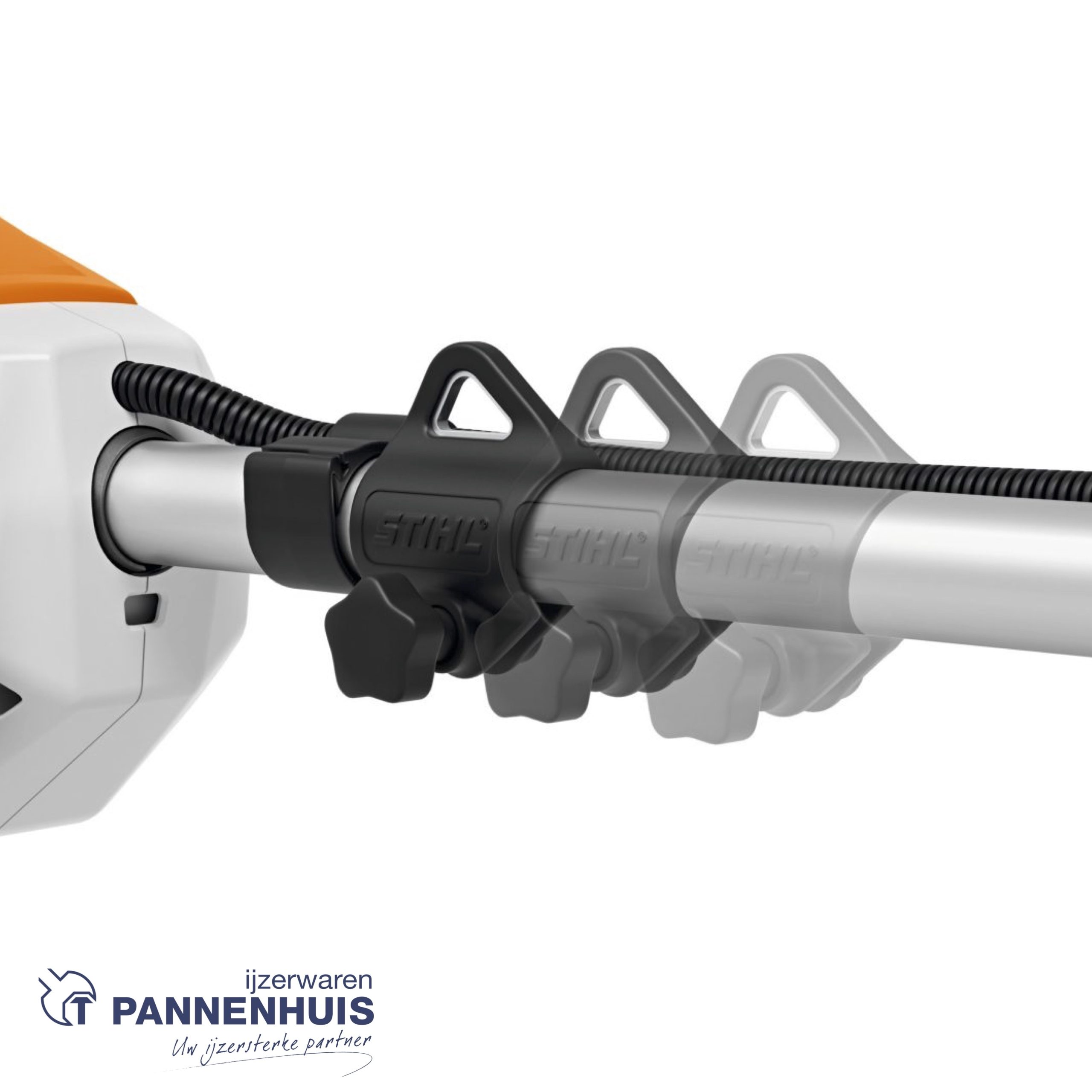 De STIHL FSA 80 R heeft een uitstekende balans. De compacte structuur zorgt voor een beter werkcomfort. De beugelhandgreep met zachte onderdelen garandeert een grote bewegingsvrijheid en dus een optimale flexibiliteit tijdens het maaien – vooral handig wanneer je je een weg moet banentussen bomen en struiken of op andere krappe plekken moet werken. Dankzij het snelspansysteem pas je de beugelhandgreep gemakkelijk aan aan de lengte van de gebruiker voor een optimale werkergonormie.