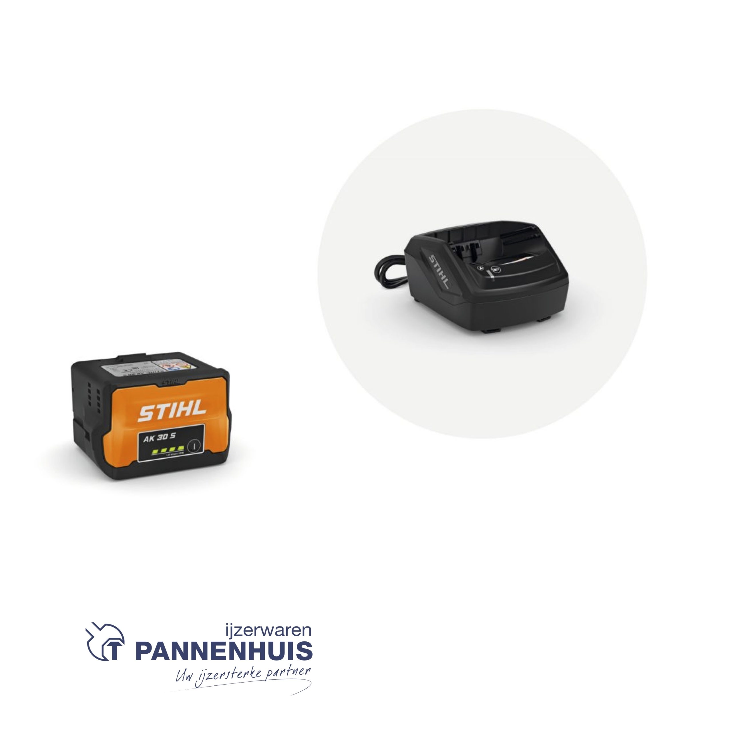 Als je nog geen geschikte STIHL accu en lader hebt, dan is deze set met een STIHL accu AK 30 S en een STIHL standaardlader AL 101 de ideale keuze. Hij bevat immers alles wat je nodig hebt om te werken met je machine van het STIHL AK systeem