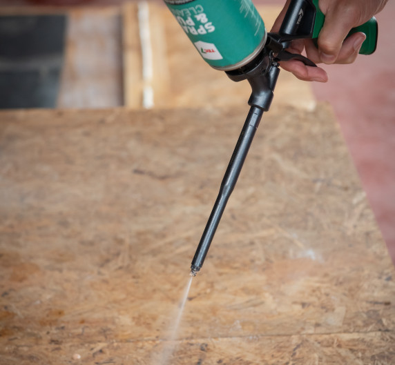 Het pistool enkele seconden bedienen, tot er zuivere SPray & PUR Cleaner uit komt