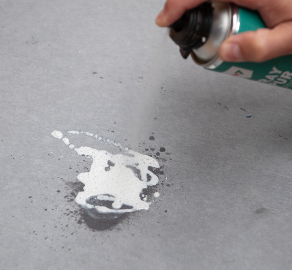 Spray & PUR Cleaner aanbrengen op een doek en hiermee het oppervlak reinigen