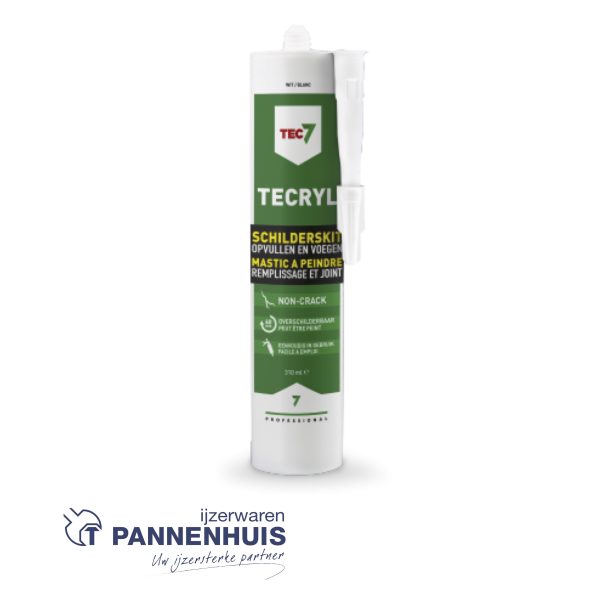 Tecryl is een professionele acrylaatkit voor het afkitten en vullen van alle bouwmaterialen. De formulering staat garant voor een perfecte afwerking met alle types verf, beits of lak: met weinig tot geen risico op reacties zoals lakbarsting of -verkleuring. Tecryl hardt uit tot een plastische consistentie die perfect de uitzetting en beweging van de ondergrond volgt, maar niet lost of scheurt.