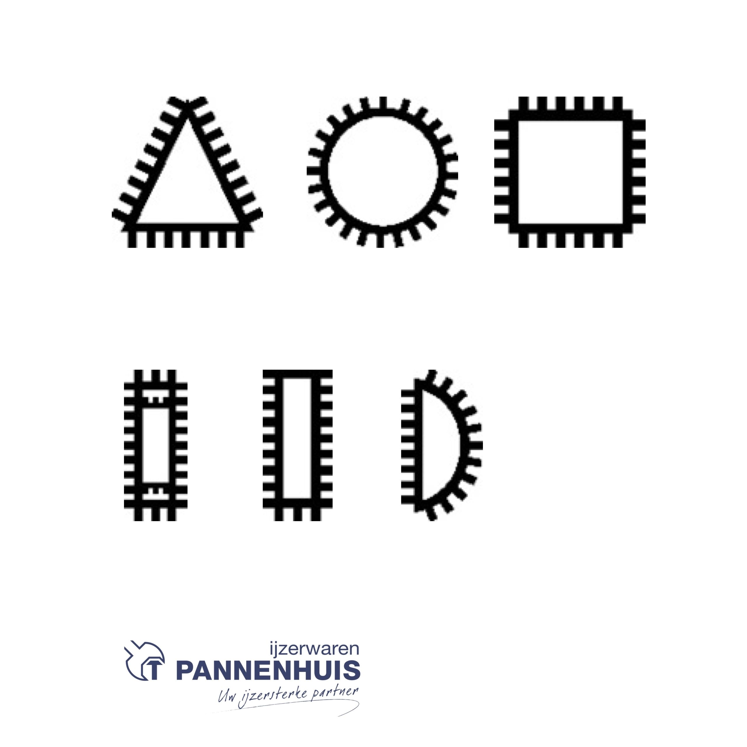 In kunststof etui · Inhoud: Platstomp, vlakspits, rond, vierkant, driekant, halfrond