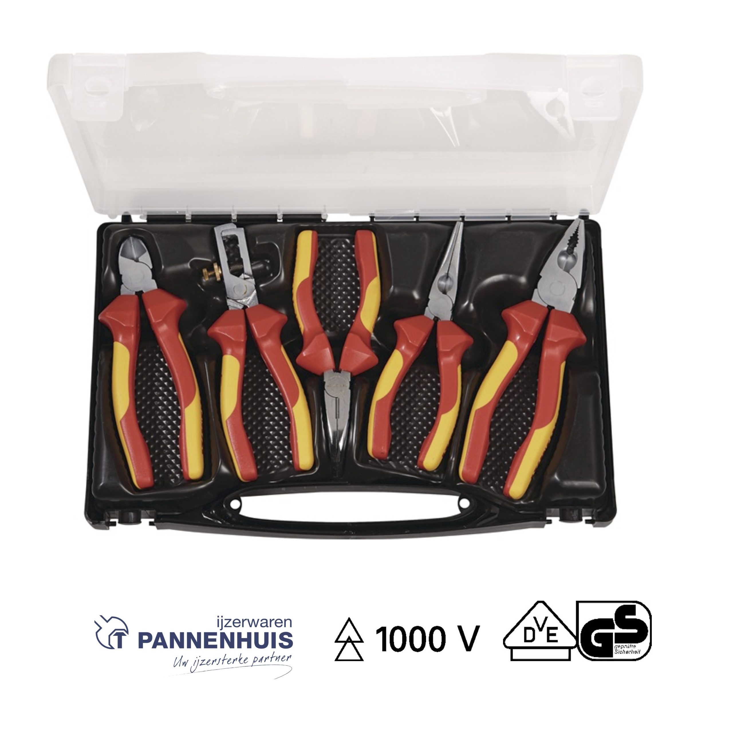 Tangen-set inhoud 5-delig VDE verchroomd in een kunststof koffer TECWERK