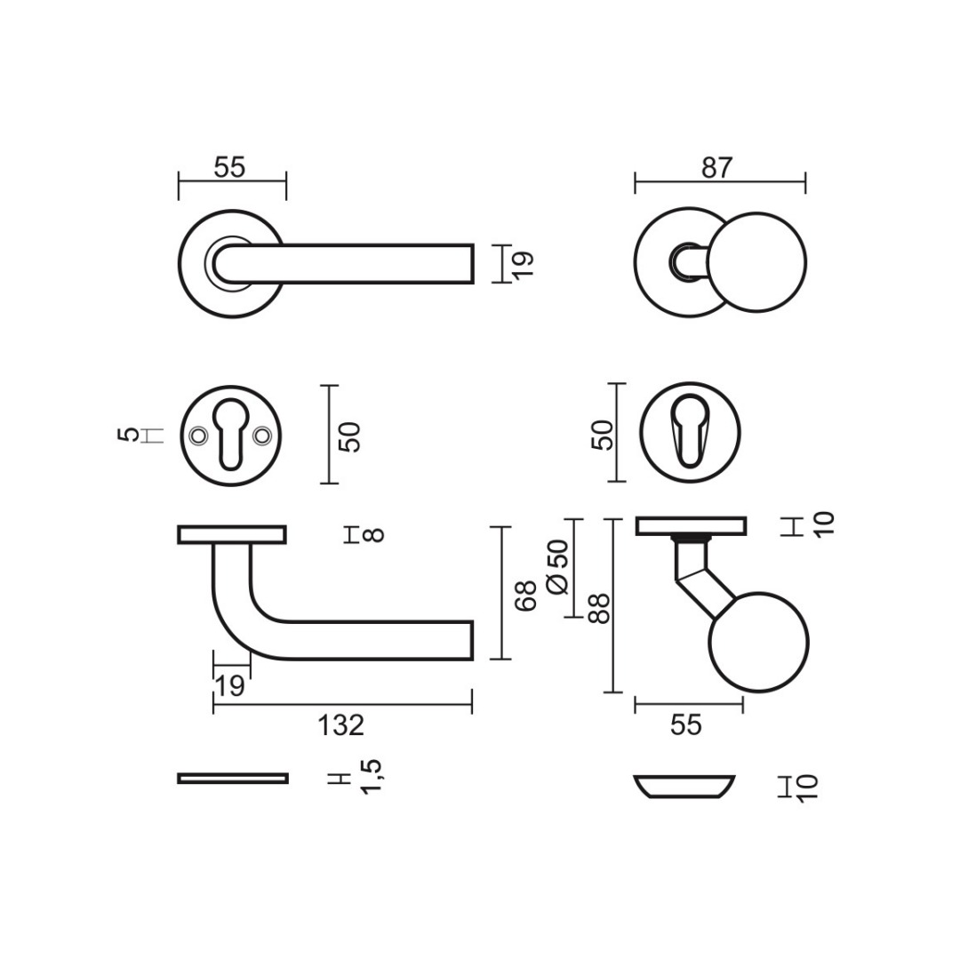 1 deurkruk + 1 top