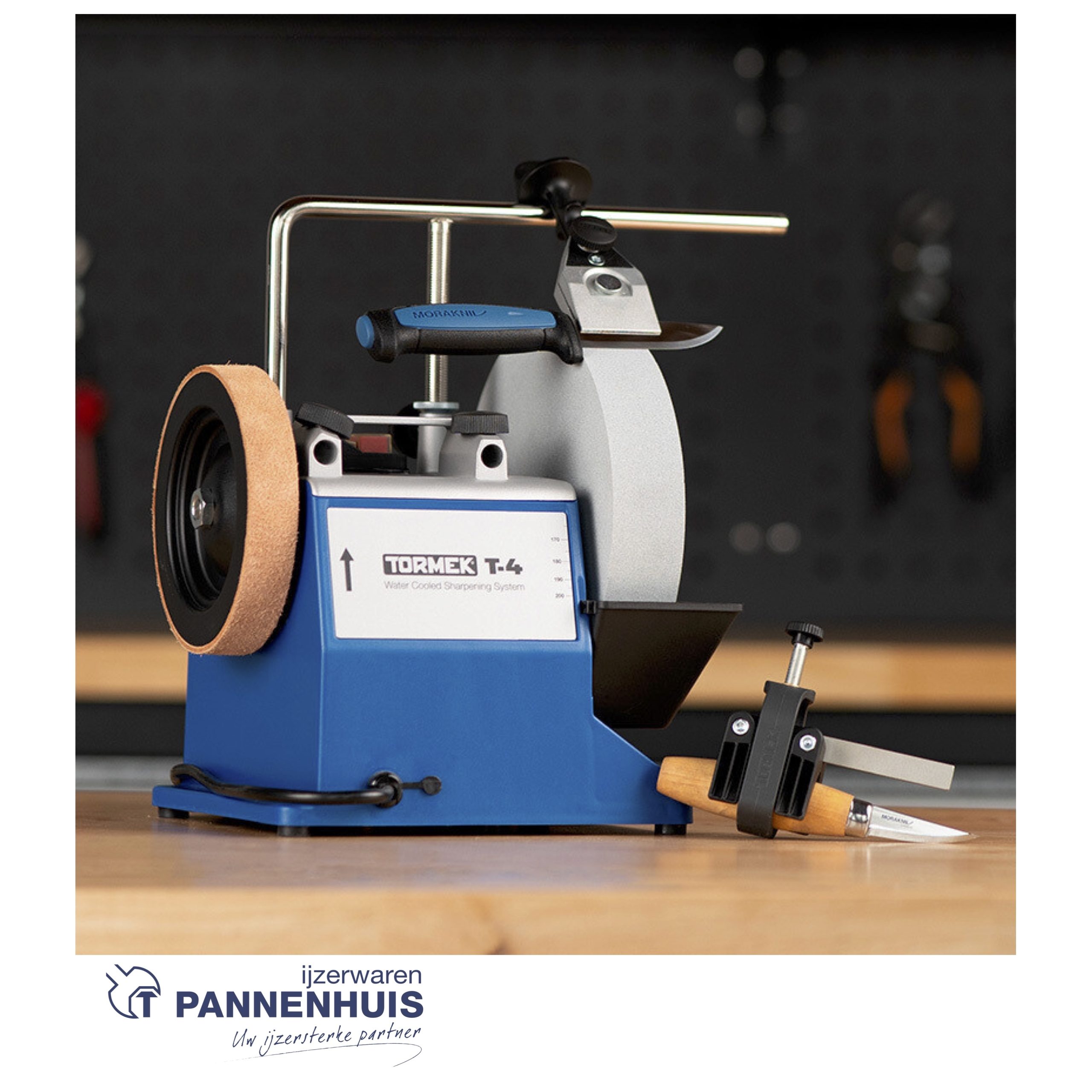 et de Tormek T4 heeft u de beschikking over een hoogwaardige machine, die ideaal is voor thuis en voor hobbyisten. De machine geeft u toegang tot het uitgebreide Tormek-systeem met slijpmallen en kan praktisch alle gebruikelijke scherpe gereedschappen slijpen.