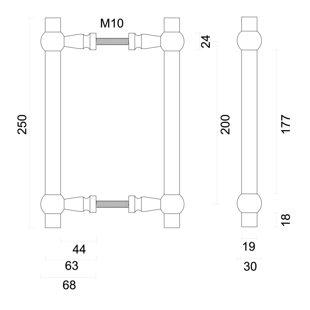Trekker PETRA 200MM INOX PLUS PAAR DEURDIKTE>3CM
