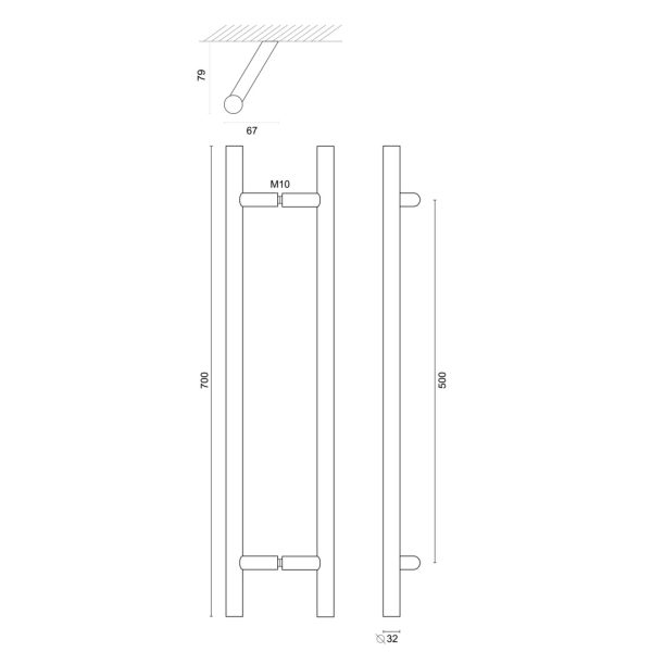 Montage door de glasdeur M10/32mm