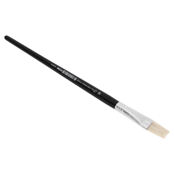 Universeel penseel met zwart gelakte houten steel voorzien van een aluminium bus. De haren zijn vervaardigd van wit Chinees varkenshaar. Deze penseel is geschikt voor universeel gebruik.