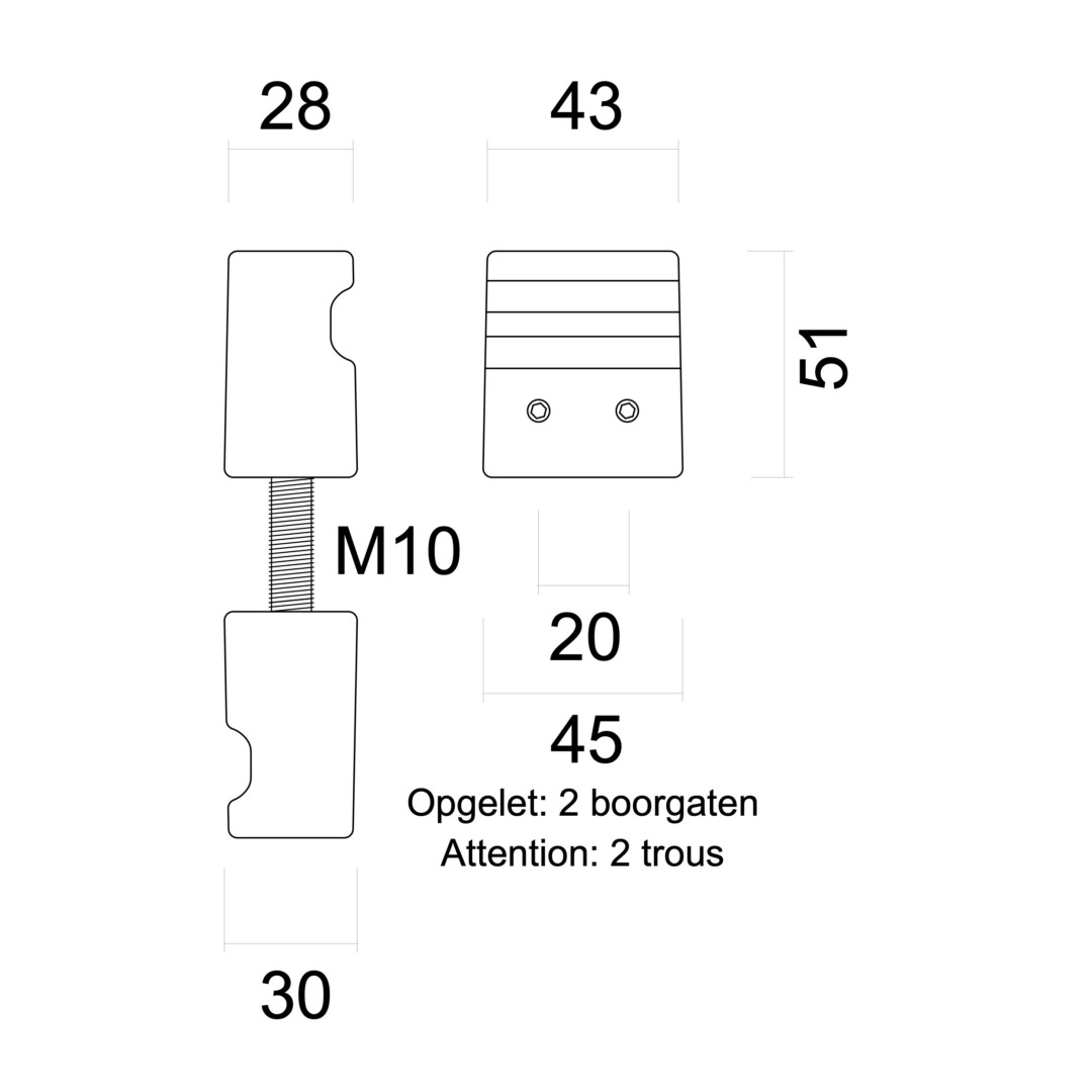 Montage door de deur met 2 tiges M10/100mm