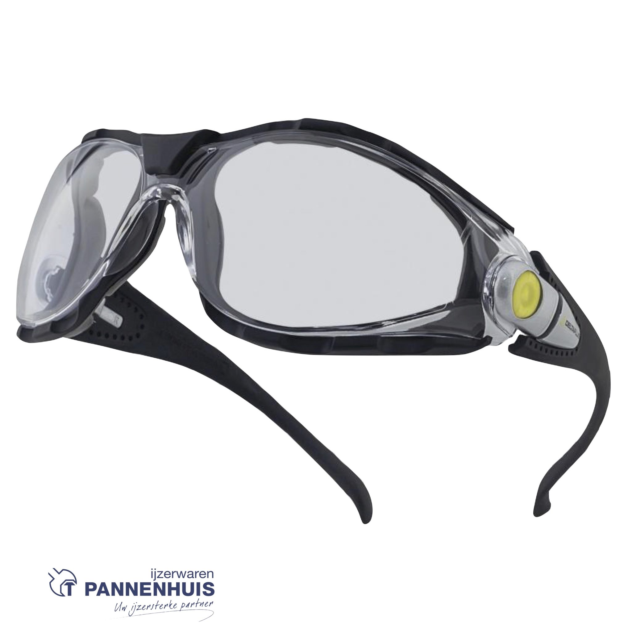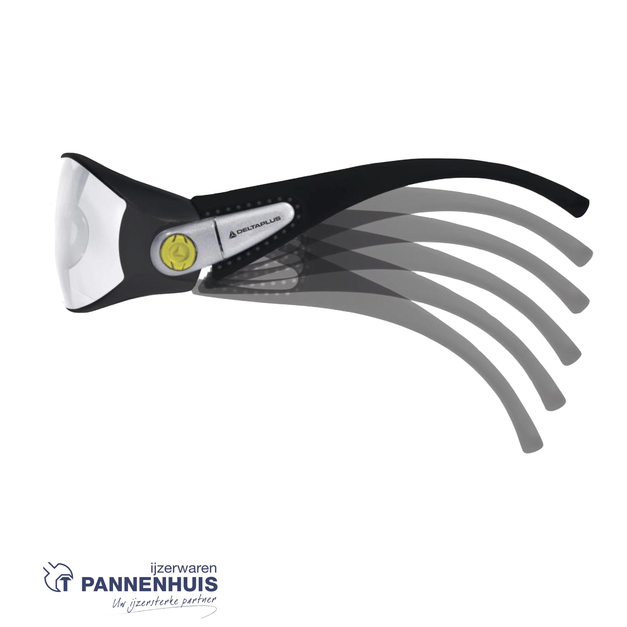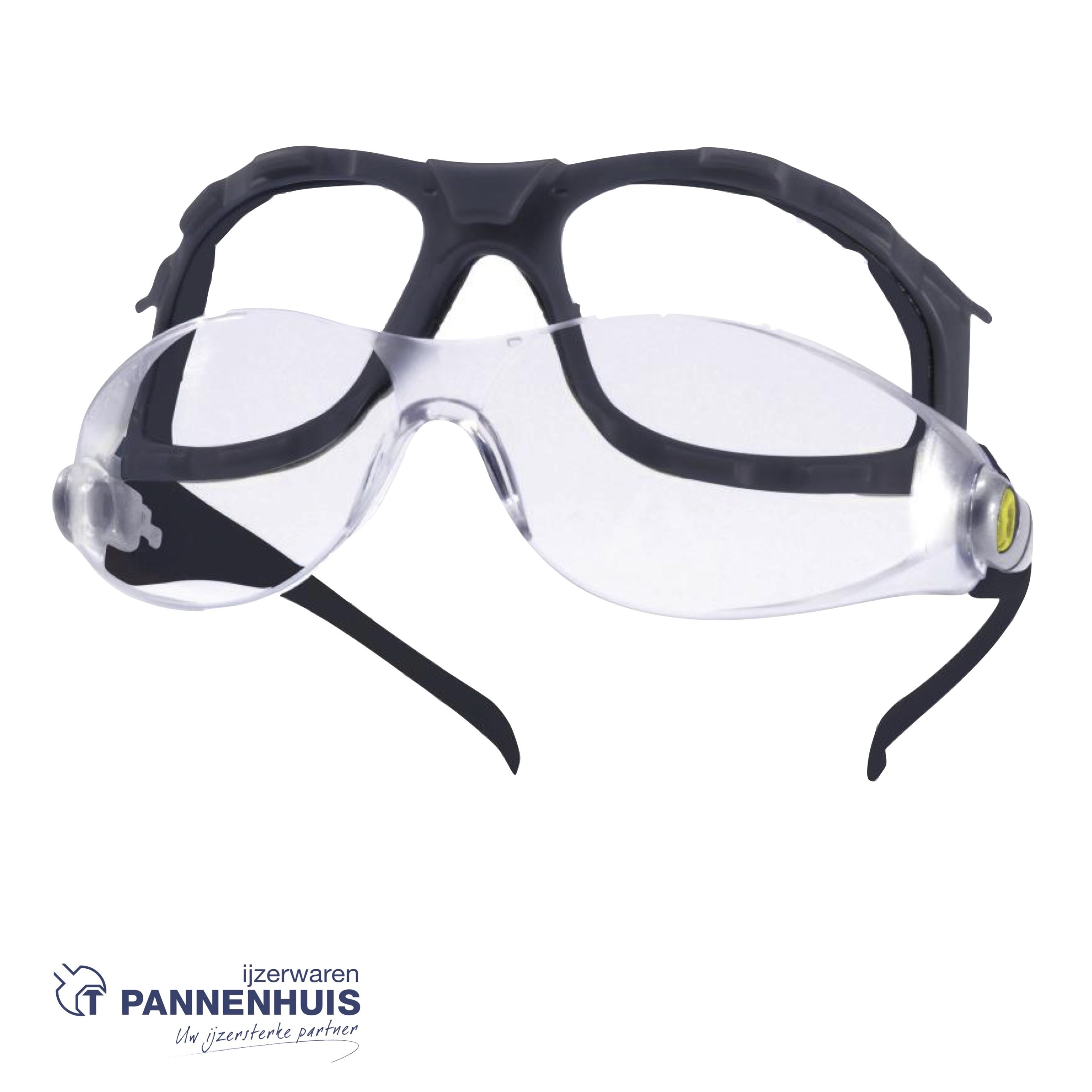 Polycarbonaatbril uit één stuk. Geïntegreerde polycarbonaat neusbrug. Inklapbare nylon veren. Laterale bescherming.