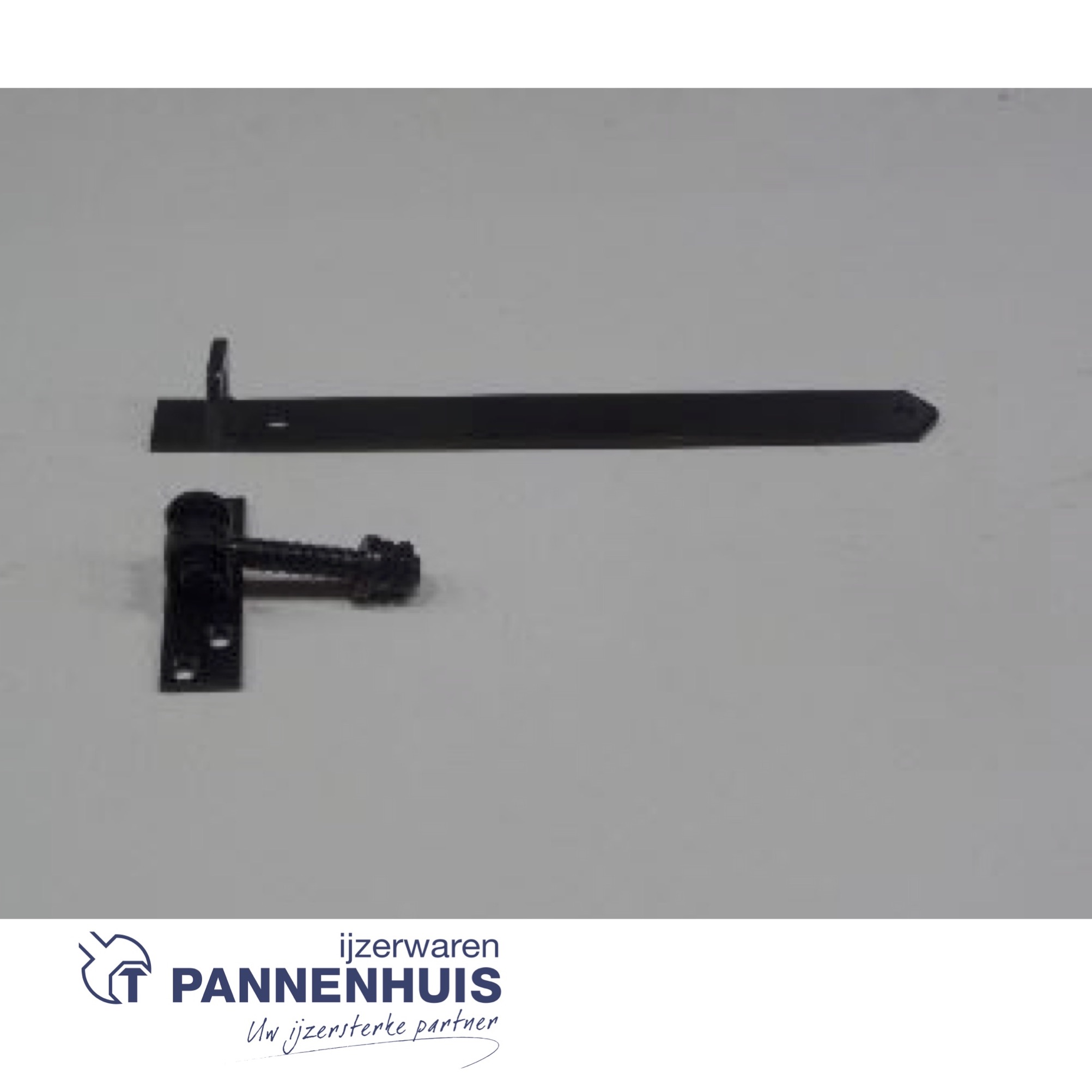 Verstelbaar poortbeslag – plaat: 130x35x5mm – heng: 400x40x5mm zwart gepoedercoat