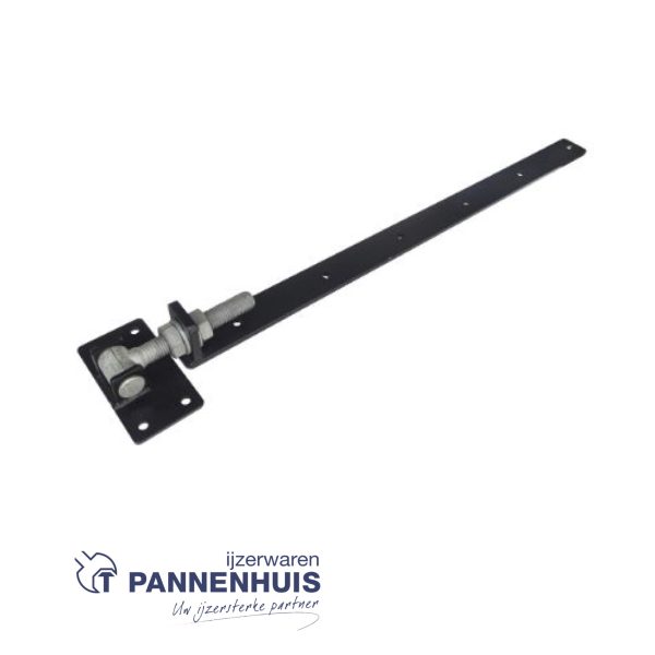 Verstelbaar poortbeslag – plaat: 150x80x6mm – heng: 800x50x8mm zwart gepoedercoat