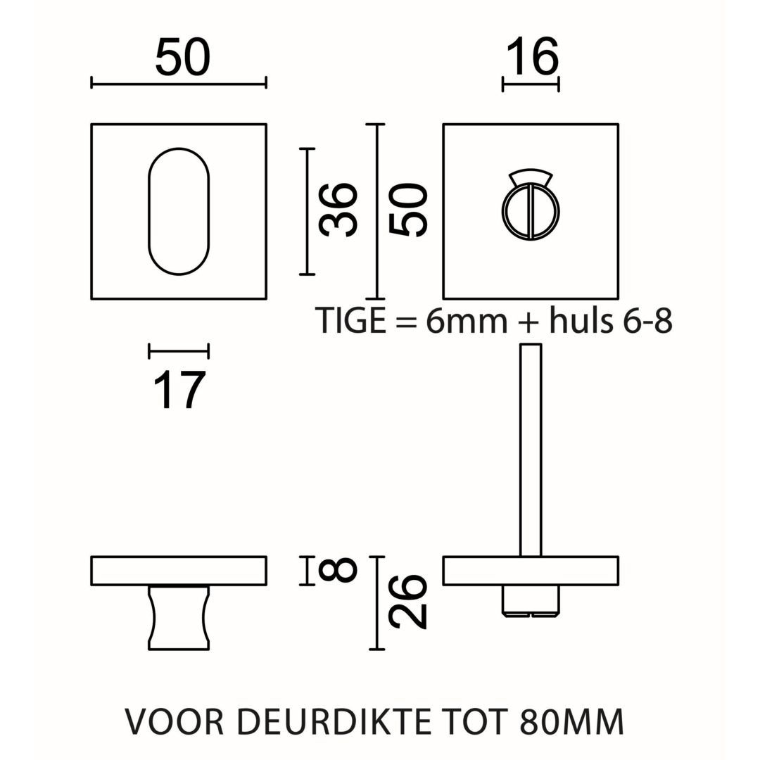 WC GARNITUUR SQUARE SHAPE INOX PLUS TIGE 120MM
