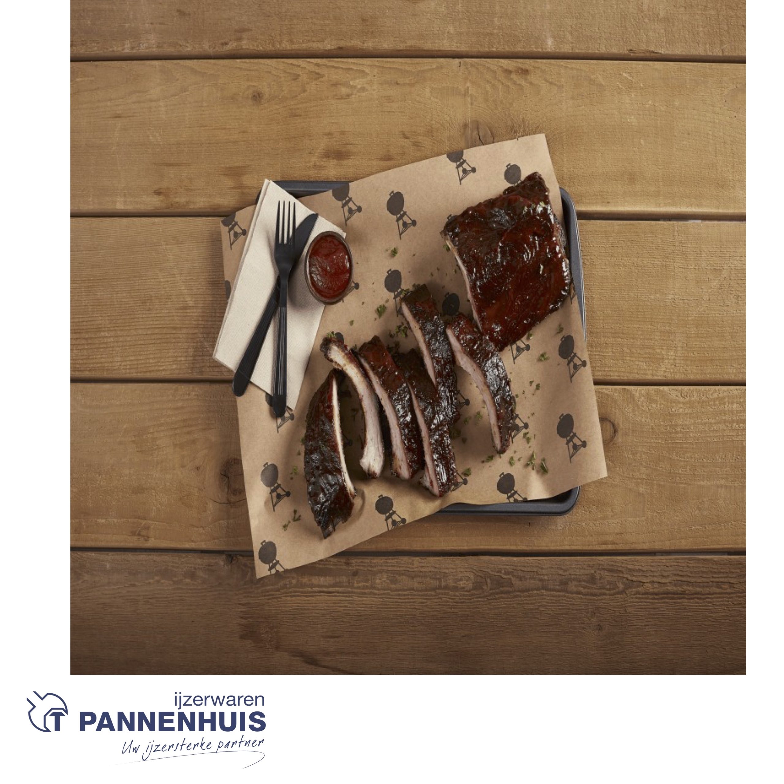 Serveer mals, smaakvol vlees met de perfecte korst door het te verpakken in Weber-slagerspapier. Door je vlees aan het einde van low-en-slow roken in slagerspapier te wikkelen, houd je het sappig. Weber-slagerspapier is uitgevoerd met afbeeldingen van de Weber-kettles waardoor het er extra leuk uitziet.
