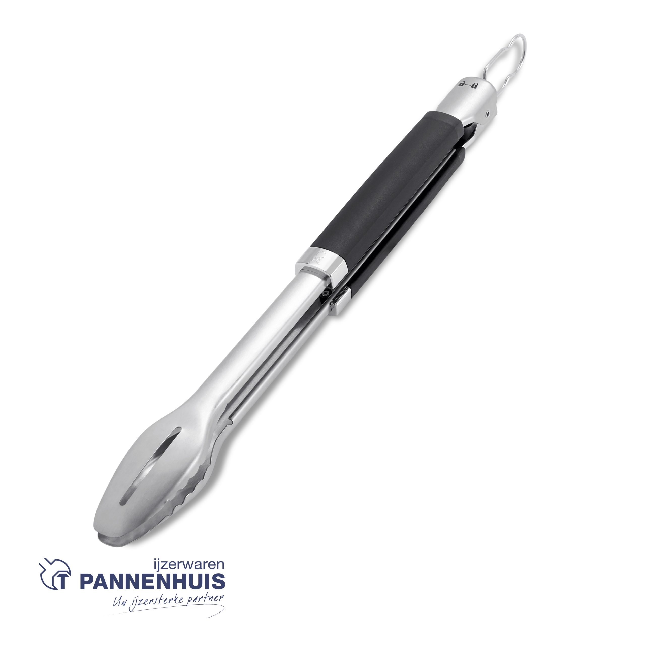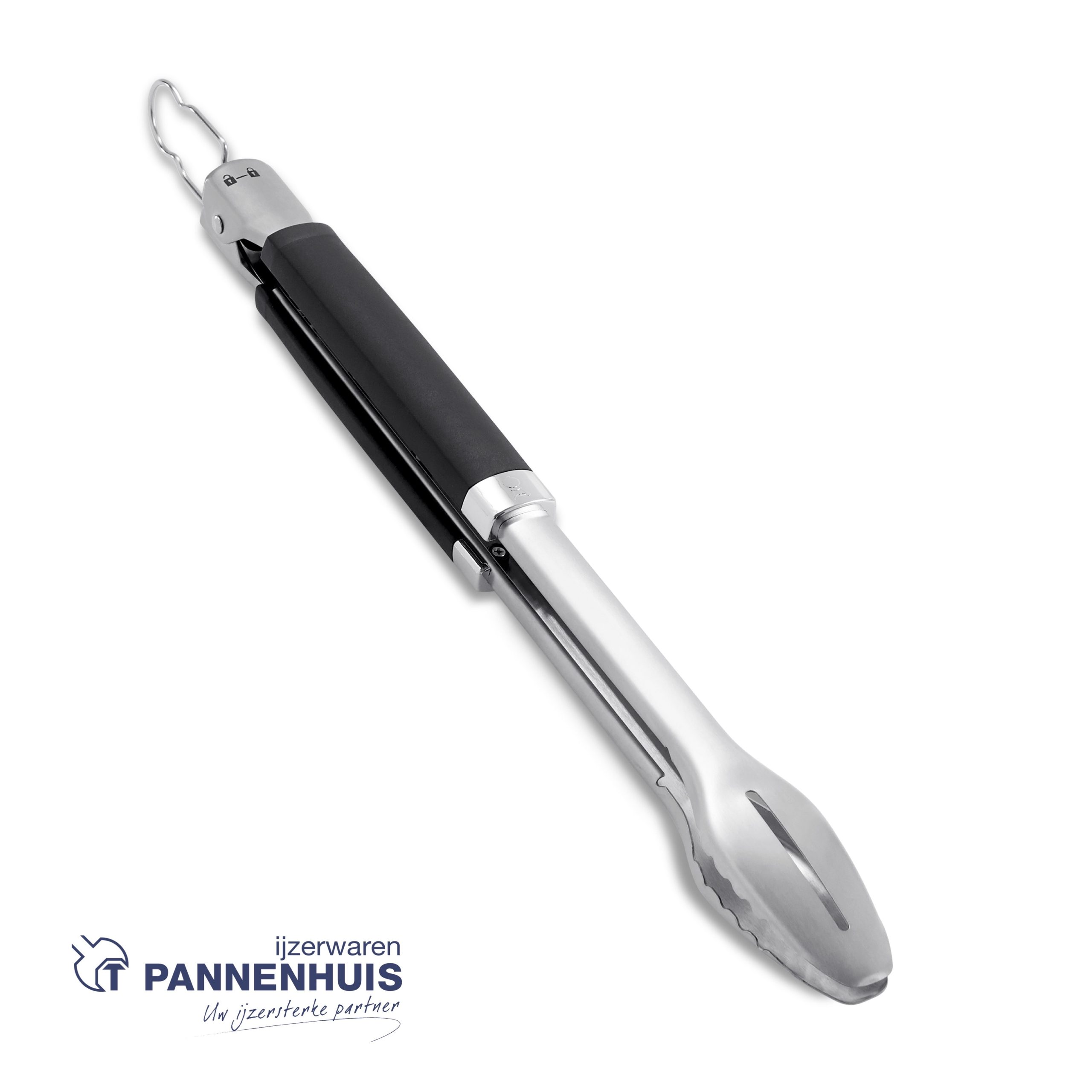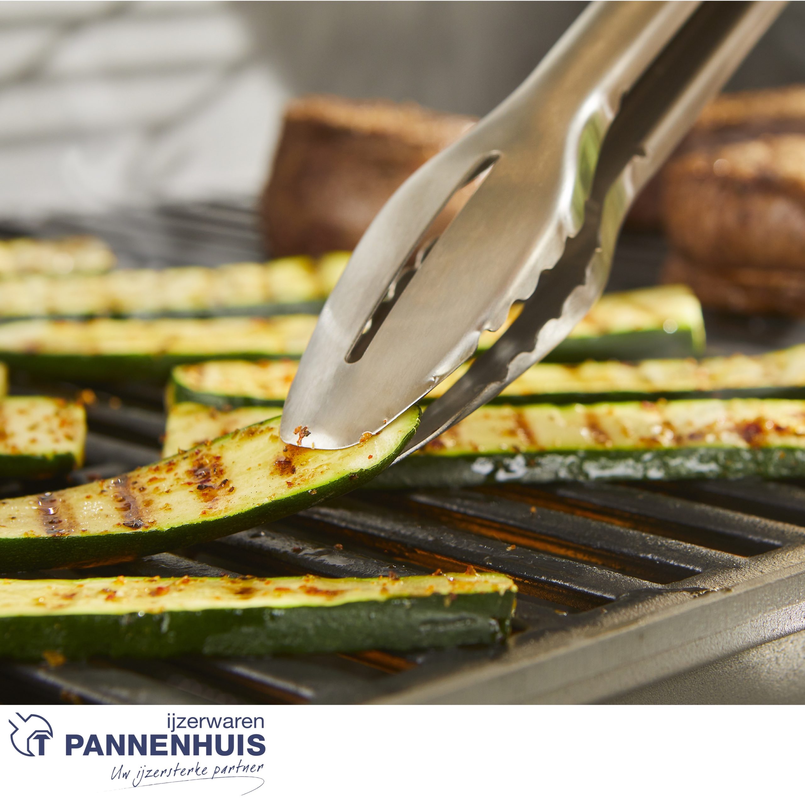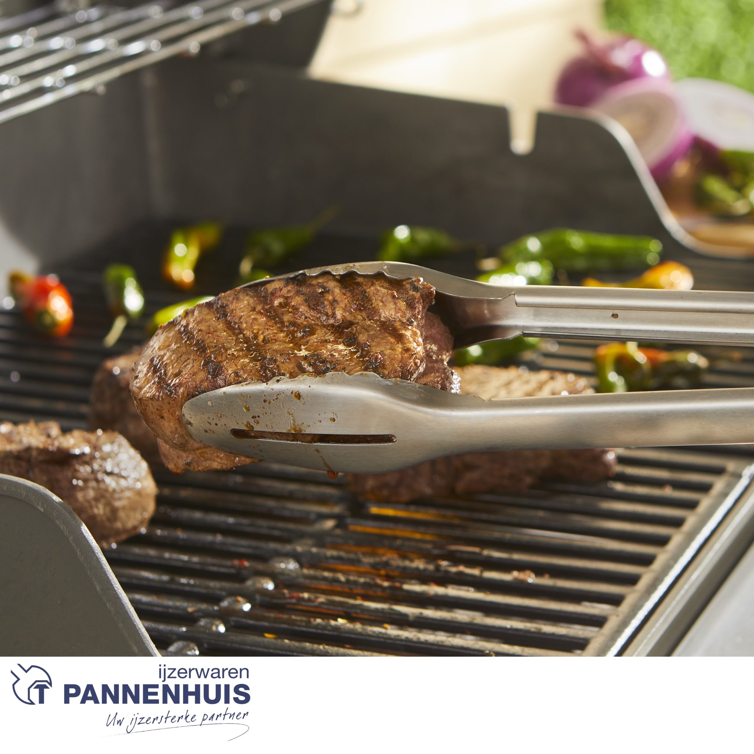 Met de Precision barbecuetang hanteer je probleemloos al je gerechten op de barbecue. De duurzame roestvrijstalen constructie en zachte handgreep geven je volledig en comfortabel de controle over je eten. De platte voorkant schuift eenvoudig onder je eten en je keert ook probleemloos delicate gerechten, zoals groente en vis, terwijl je met de precieze greep zware ribstukken probleemloos verplaatst. Met de handsfree vergrendeling open en sluit je de tang snel en eenvoudig en kun je hem compact opbergen.