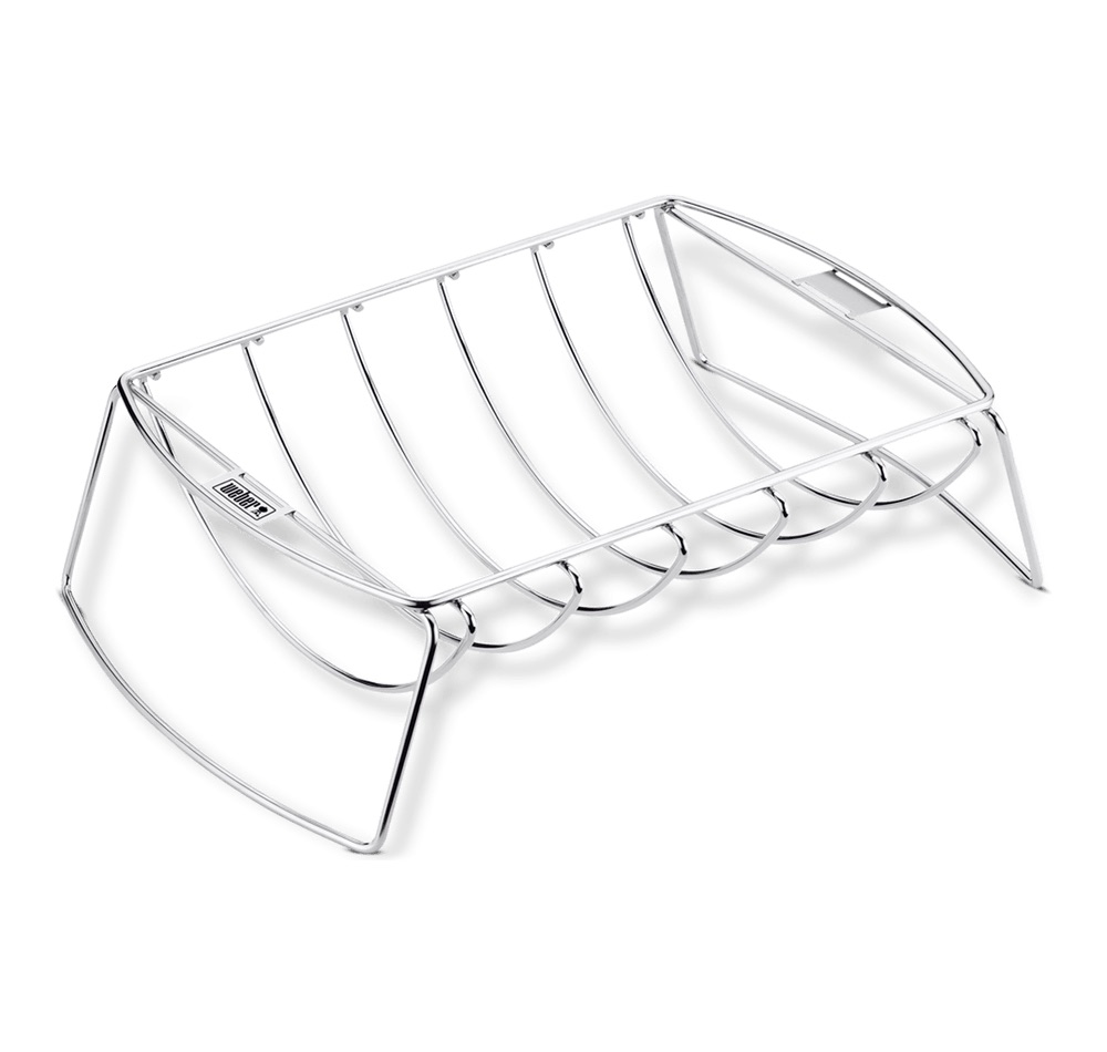 Mals vlees dat zo van het bot valt. Verrukkelijke braadstukken met een heerlijke smaak die je alleen krijgt door de rook onder het deksel van de barbecue. Het twee-in-één ontwerp van de Premium Vleeshouder is geschikt voor meerdere spareribs zodat u meer ruimte op uw grillrooster krijgt. Het kan ook worden gebruikt als een stevige korf voor sappige braadstukken.