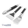 Alles wat je nodig hebt voor een barbecuesessie onderweg. De draagbare gereedschapsset voor de bakplaat bevat een compacte spatel, tang en schraper die perfect zijn om mee te nemen naar je volgende kampeeruitje of picknick. Als je weer thuis bent, stop je de tools gewoon in de vaatwasser om ze gemakkelijk schoon te maken.