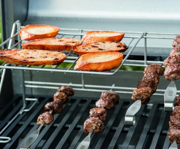 Het rooster haakt in het gelaagde Elevations grillrooster, waardoor u meer grillcapaciteit creëert