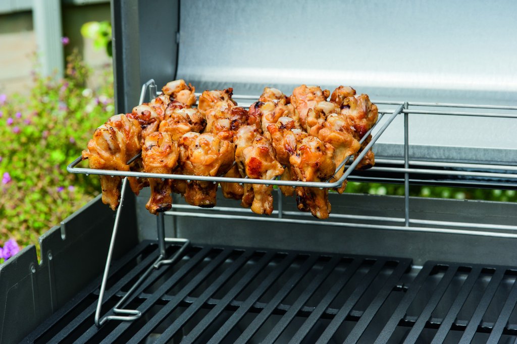 Het veelzijdige rek is perfect voor het grillen van drumsticks, het roosteren van brood en het warm houden van kleine gerechten