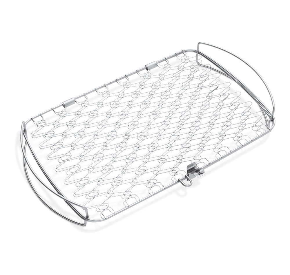 Flexibele draadconstructie biedt ruimte aan verschillende maten en vormen van voedsel