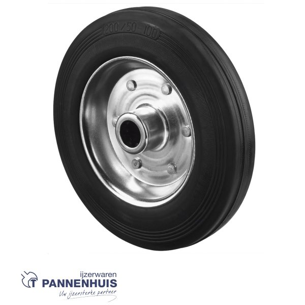 Rubberen wiel B55.200, Wiellichaam: Verzinkt staal, Loopvlak: Rubber zwart, Rollager, Ø wiel 200 mm, Draagvermogen 205 kg