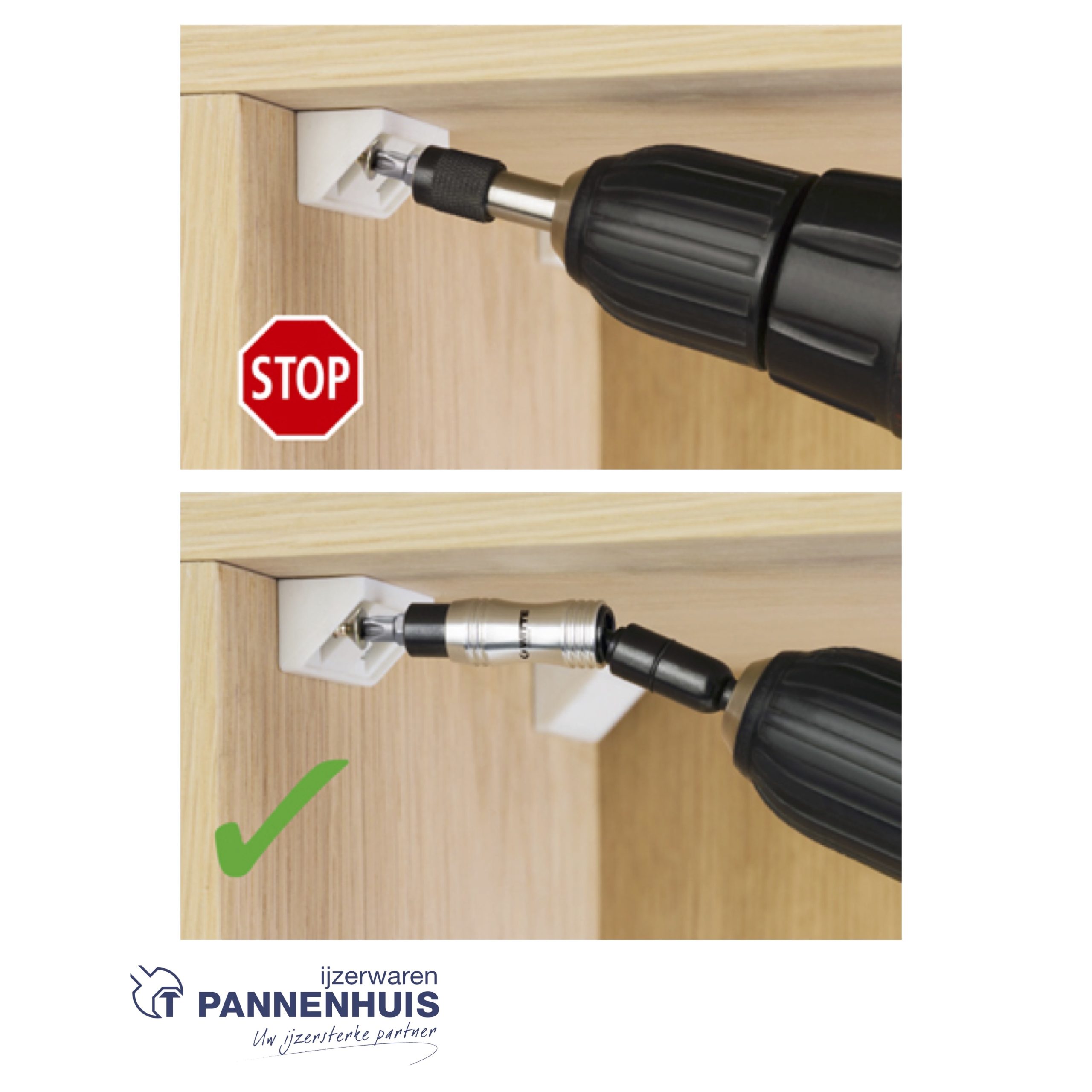 Door de verschuifbare boorhouder kan hij ook als standaard magnetische bithouder worden gebruikt.