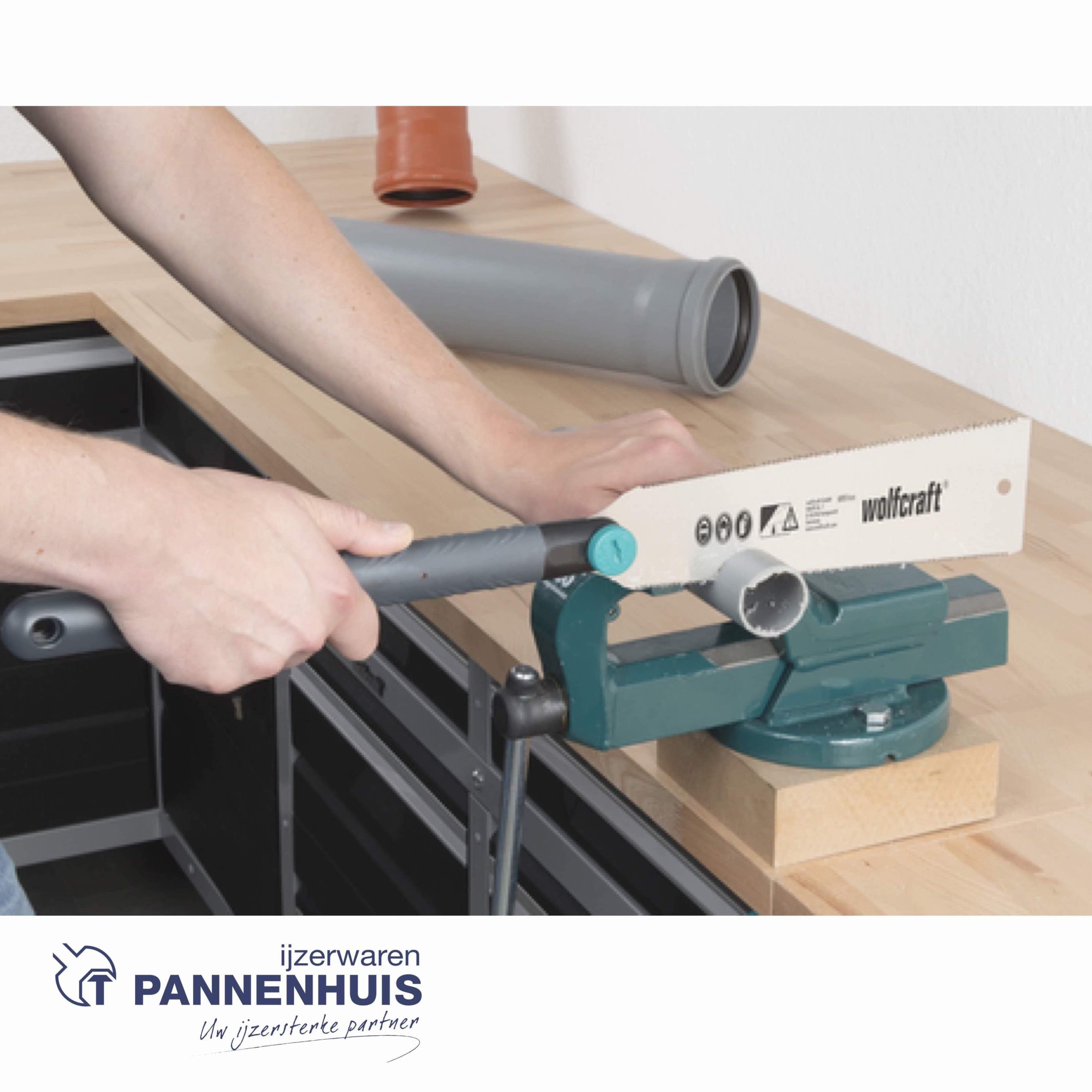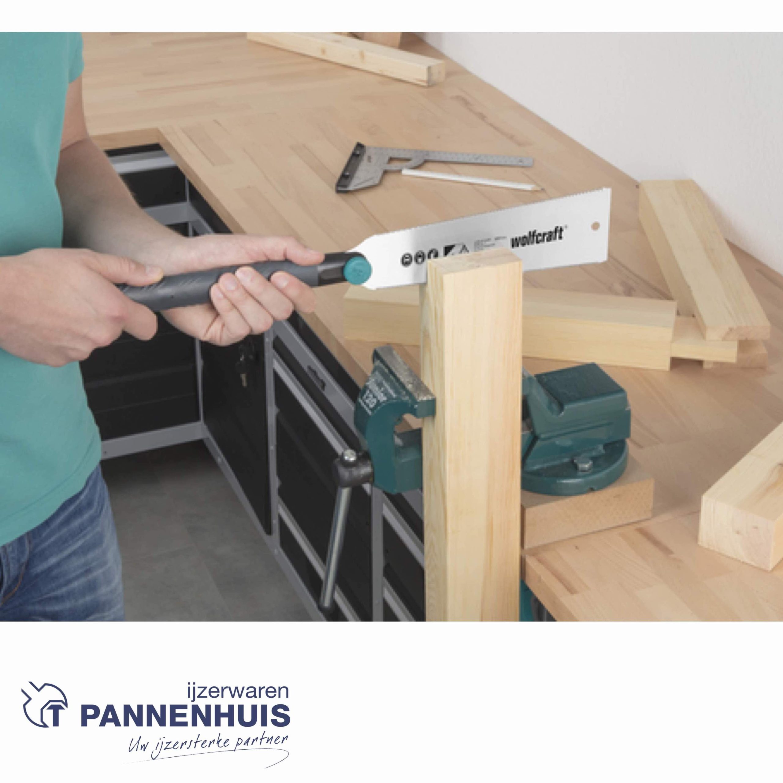 De veelzijdige Japanse zaag van wolfcraft heeft een flexibel lemmet dat aan beide zijden gekarteld is en is ideaal om eenvoudig plinten te zagen met de afschuin- en verstekbak. Ook takken, houten balken, vierkant hout en kunststof buizen kunnen met gemak gezaagd worden. De fijn getande zaag, met 17 puntige en geslepen tanden per inch, wordt gebruikt voor dwarse zaagsneden. De grof getande zijde is voorzien van 8 recht gezette en geslepen tanden per inch. Het is ideaal voor longitudinale sneden op de trekslag. De ergonomische handgreep is gemaakt van 2 verschillende kunststof onderdelen en maakt werken moeiteloos. Om ruimte te besparen bij het opbergen van de Japanse zaag, kun je de handgreep zonder gereedschap verwijderen. Een veelzijdig en krachtig zaaggereedschap dat snel onmisbaar voor u zal worden.