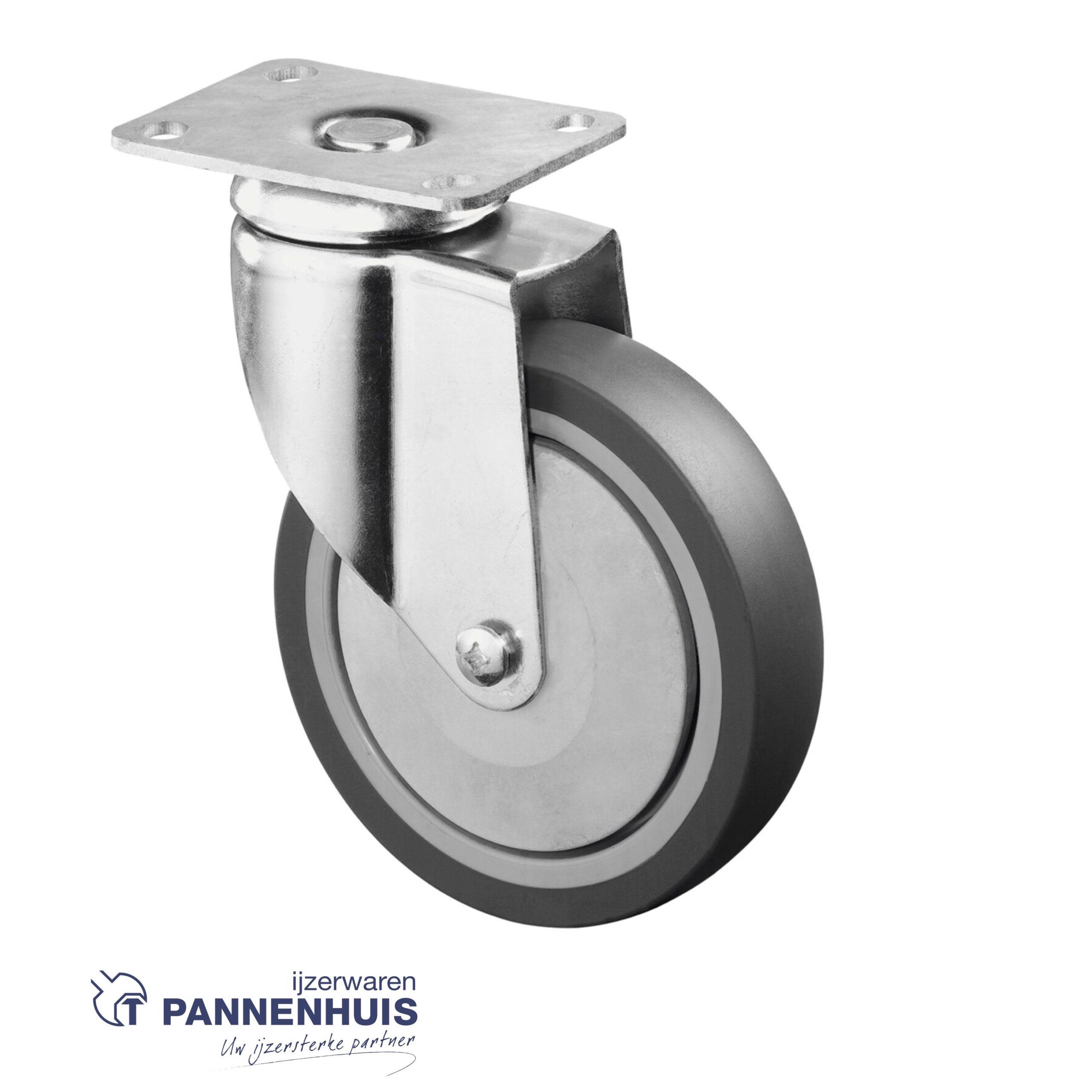 Zwenkwiel Ø 125mm 100kg op plaat rubber grijs